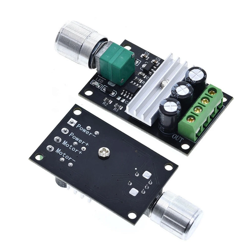 This DC motor controller can control the direction of the DC motor, and the pulse width modulation (PWM) DC voltage has a fully adjustable duty cycle of 0-100%.