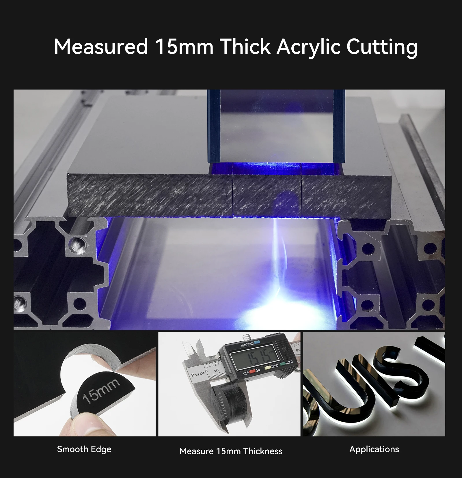 Ультра-тонкая лазерный фокус участке снижается до 0,08*0,08 мм, высокая плотность лазер может легко подрезать до 20 мм толщиной, дерево, толщиной 15 мм черный акрил; Вы можете напрямую выгравировать зеркало из нержавеющей стали, металл, керамика, стекло и гравировка и скорость резки на 40% выше, чем у обычной модели, которая может быть сопоставима с эффектом 150W CO₂Лазерная гравировальная машина. Температура лазерного спекания до 1200 ℃