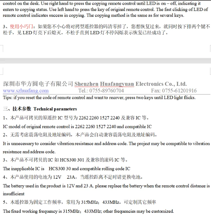 1. Универсальные пульты дистанционного управления, совместимые с большинством пультов дистанционного управления для электрических ворот и гаражных дверей от FAAC, пришли, хорошие и другие с использованием фиксированного кода 433,92 МГц частоты.