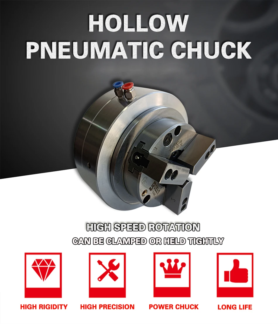 Патрон легко устанавливается, и его метод подключения соответствует промышленным стандартам, без необходимости изменения оригинальной структуры станка; Цилиндр и патрон интегрированы и разработаны, И один патрон может быть установлен в передней и задней части станков соответственно для использования в то же время.
