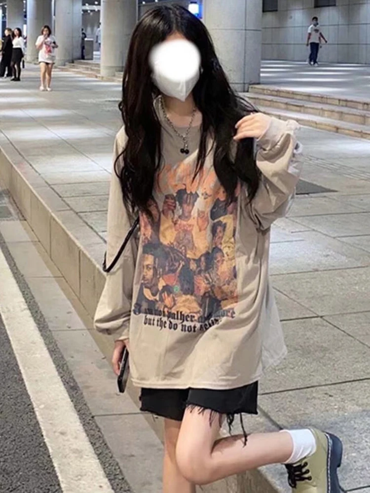 Свитер с круглым вырезом и принтом в стиле ретро женский дизайн 2022 весна и осень Ins Корейская версия Свободная рубашка для студента