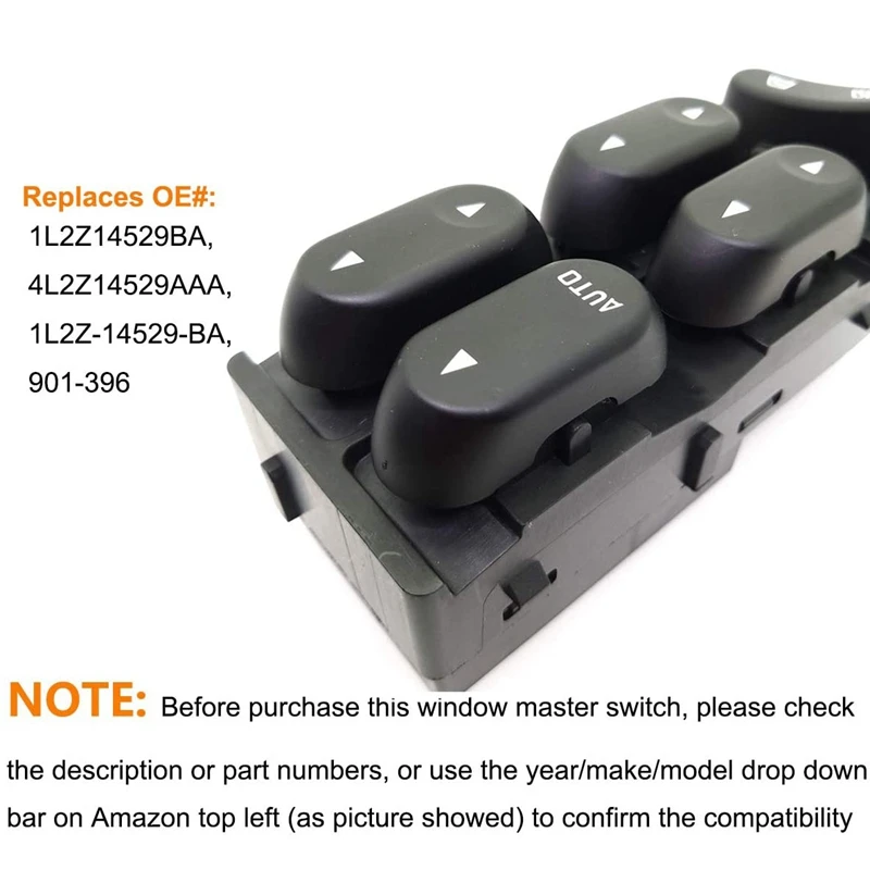 Тип изделия: кнопочный переключатель; Название модели: переключатель стеклоподъемника; Номер детали: 1L2Z14529BA, 4L2Z14529AAA, 1L2Z-14529-BA, 901-396; Специальные Особенности: переключатели управления окном; Размещение на транспортном средстве: передняя левая сторона (водительская сторона)
