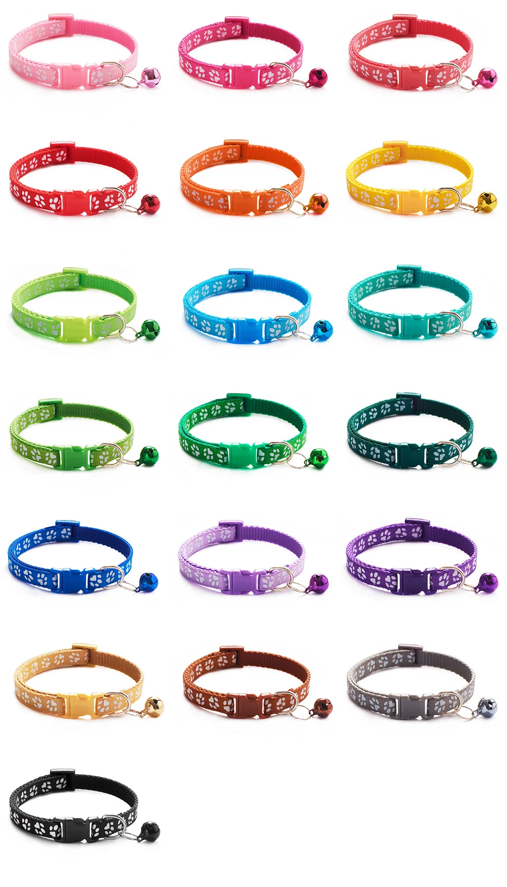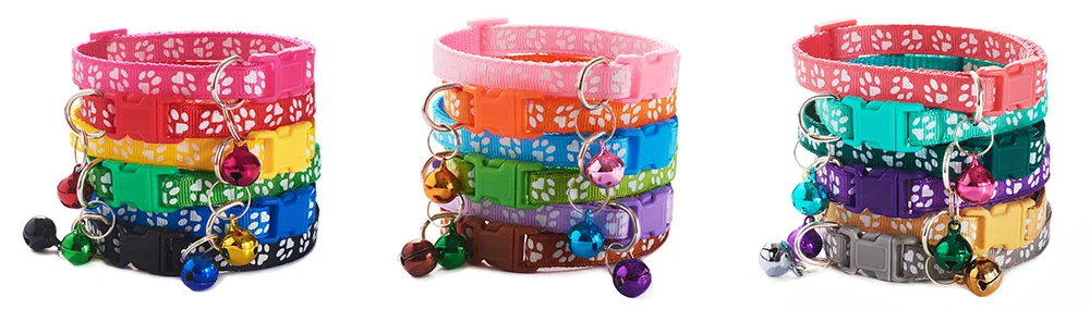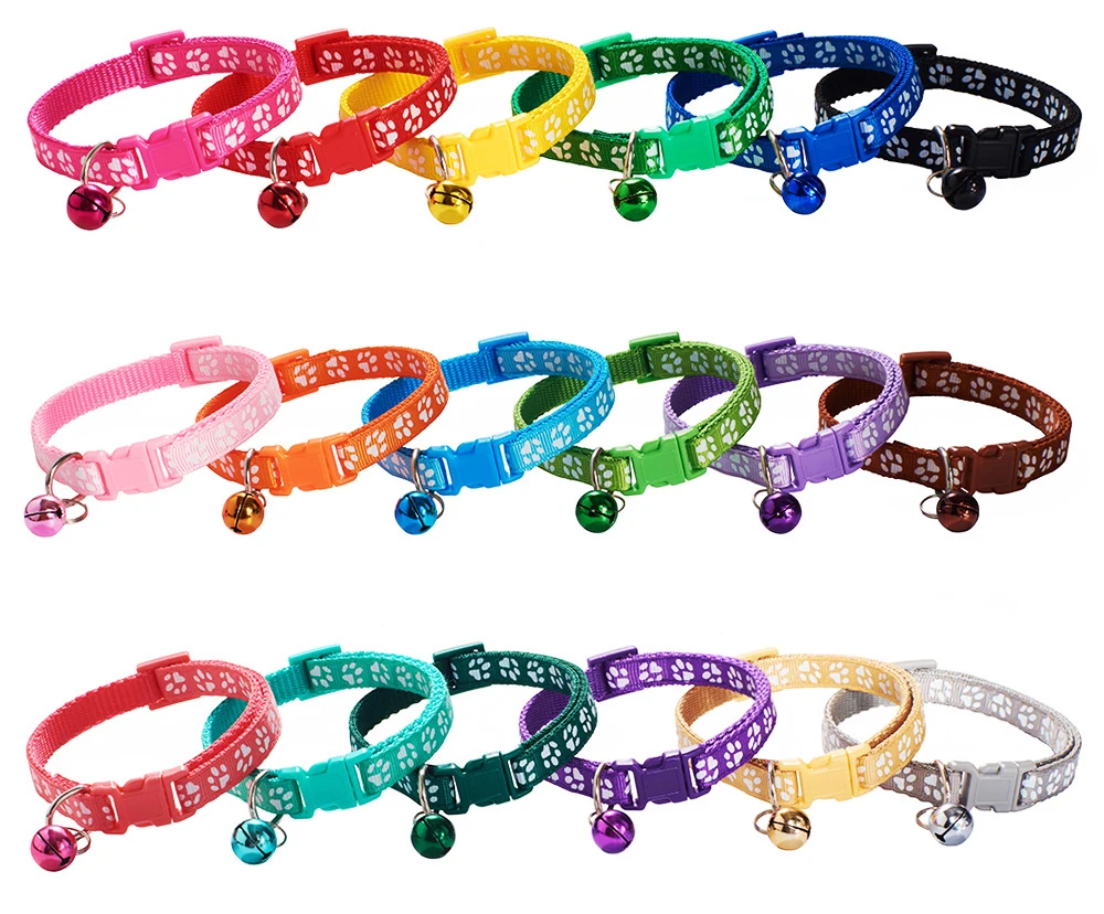 10 шт., милые ошейники для собак, оптовая продажа, мультяшная лапа, принт кошки, шейный ремешок с колокольчиком, щенка, нейлон, регулируемый ошейник для котенка