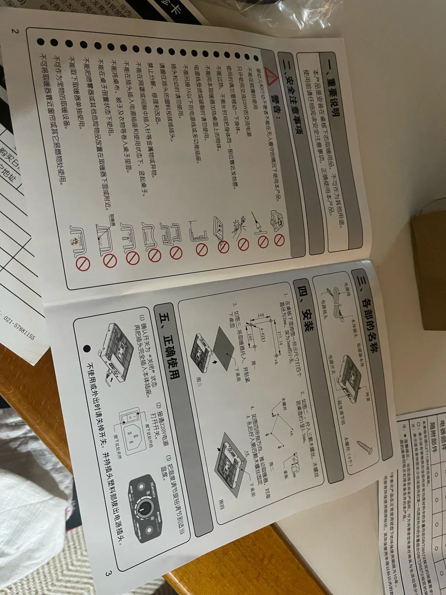 It’s all in Chinese and no idea what it says but as long as I see 220V and plug is for my country, that’s all matter! It doesn’t have control on the cord like typical Japanese kotatsu but you can control under the table. and cord isn’t covered with cloth so it gets hot so might need to do something with it but overall super happy!