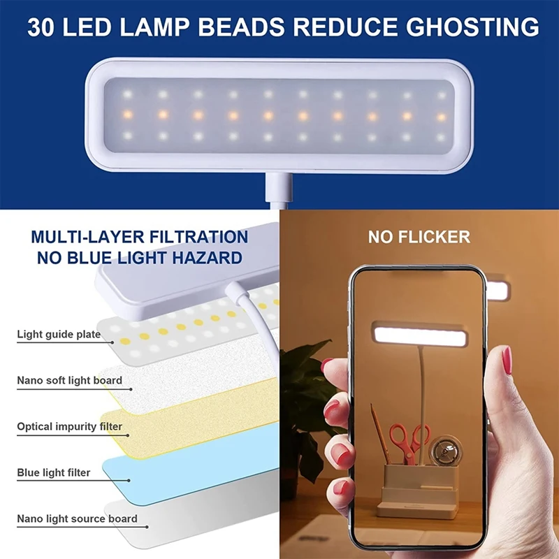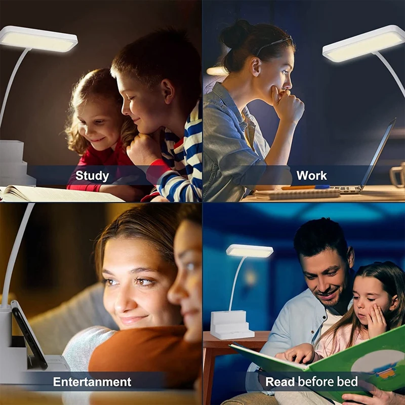 Много места для хранения: Эта настольная лампа имеет 2 держателя для ручек и 1 мобильный телефон, который можно использовать для размещения канцелярских принадлежностей и мобильных телефонов. Это очень удобный дизайн.