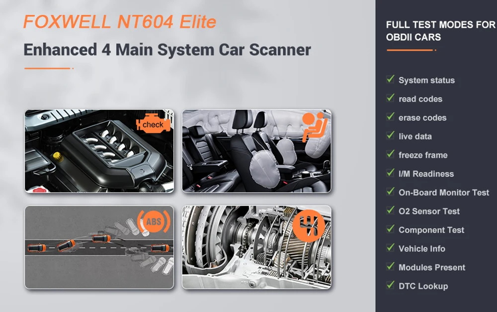 FOXWELL NT604 Elite scan tool-2022 Новая версия от FOXWELL, который предназначен для тех автомобильных собственников, которые хотят понять причину проблемы перед исправлением проблемы автомобиля с помощью сканирования наиболее обычных систем, таких как abs srs двигатель и коробка передач. Диагностический инструмент NT604 Elite поставляется с новейшим программным обеспечением, Которые можно использовать из коробки. Не нужно терять время на загрузку программного обеспечения.