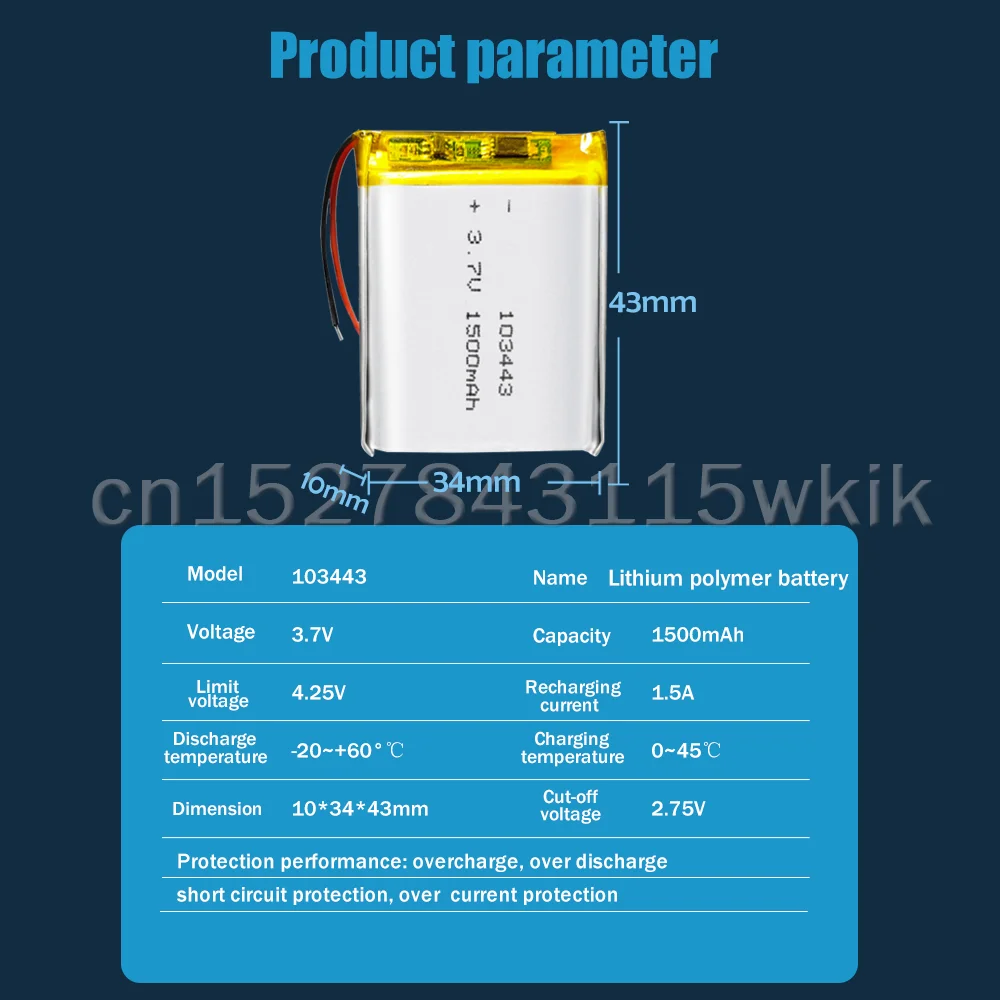 103443 3,7 V 1500mAh литий-полимерный литий-ионный Li-po аккумулятор для MP4 MP5 игровой машины Bluetooth динамик массажер камеры