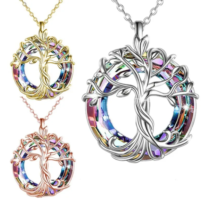 Стиль: классический, модный, простой, натуральное дерево, круглый кулон с градиентным кристаллом