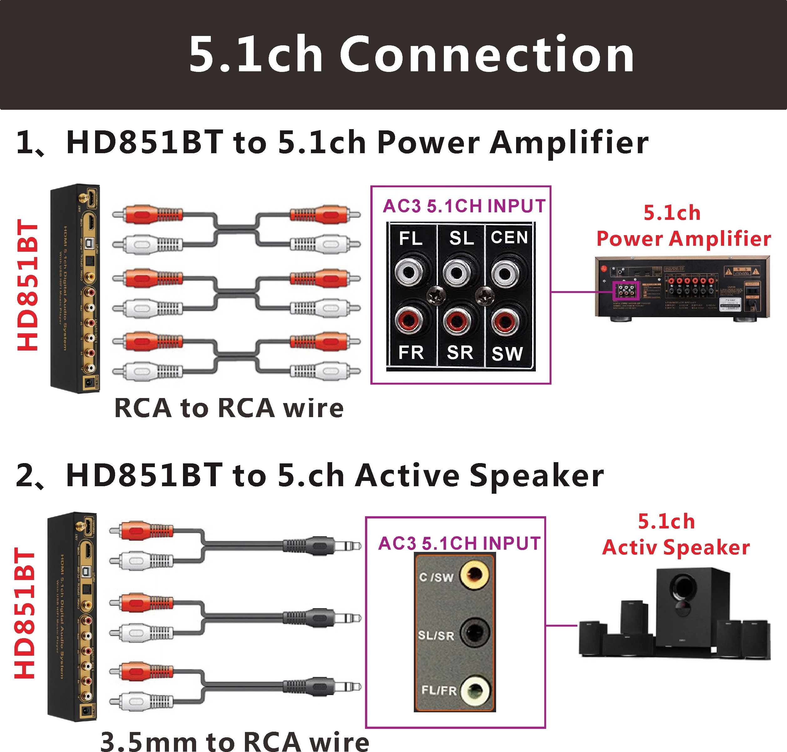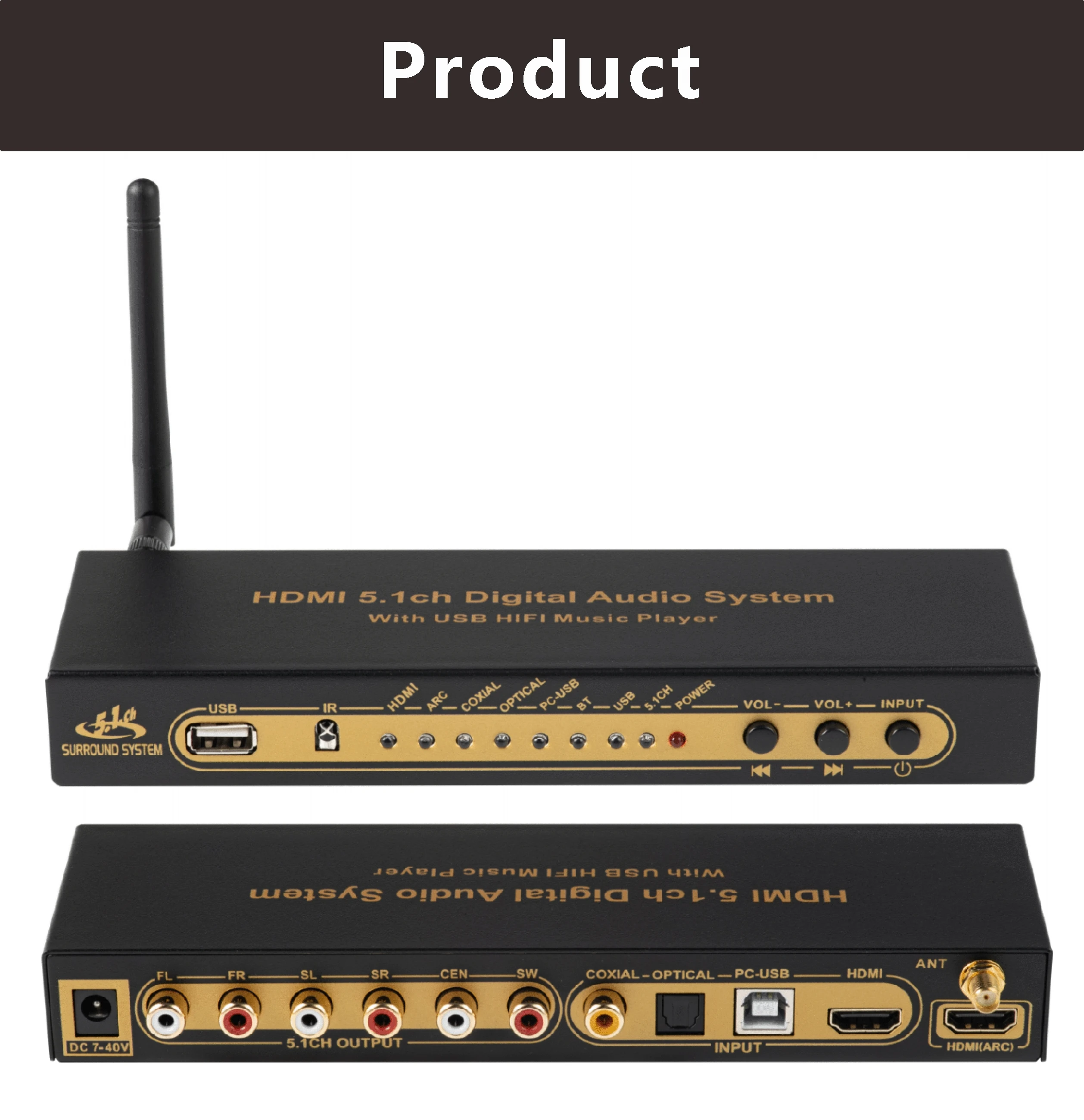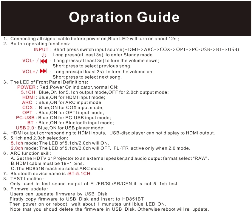 3: все источники сигнала (HDMI/ARC/COXIAL/OPTICAL/PC-USB/USB) могут декодировать на 5.1ch выход, это аудио декодер системы.