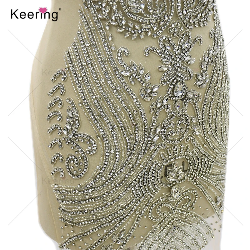 Ручная работа большой тяжелый патч Кристалл бисера лиф стразы аппликация для шитья на платье вечернее Выпускной WDP-406