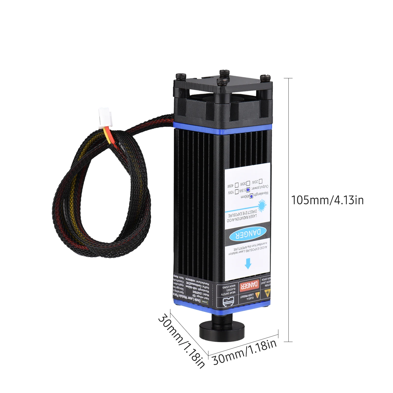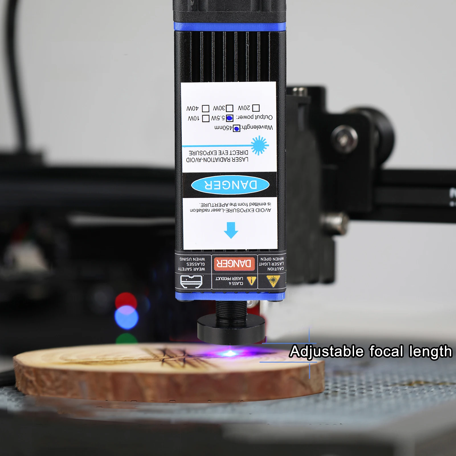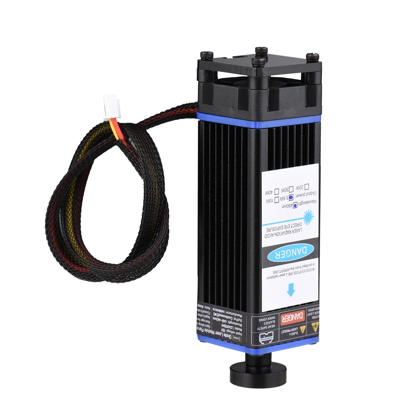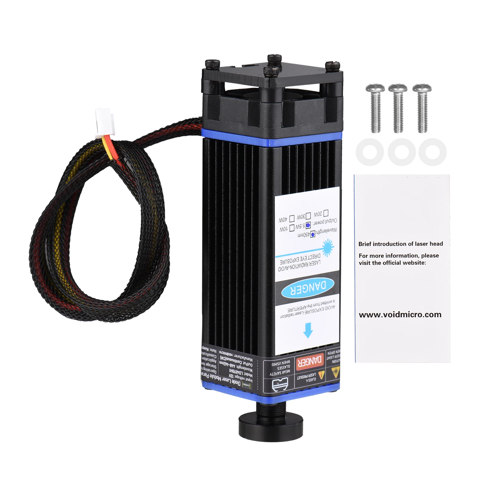 Профессиональный лазерный модуль, простой в установке, с более низкой потерей, обеспечивает длину волны 450нм, для эффективной, точной гравировки и резки пластика, дерева, кожи, бумаги и так далее, подходит для широкого спектра гравировальных машин.