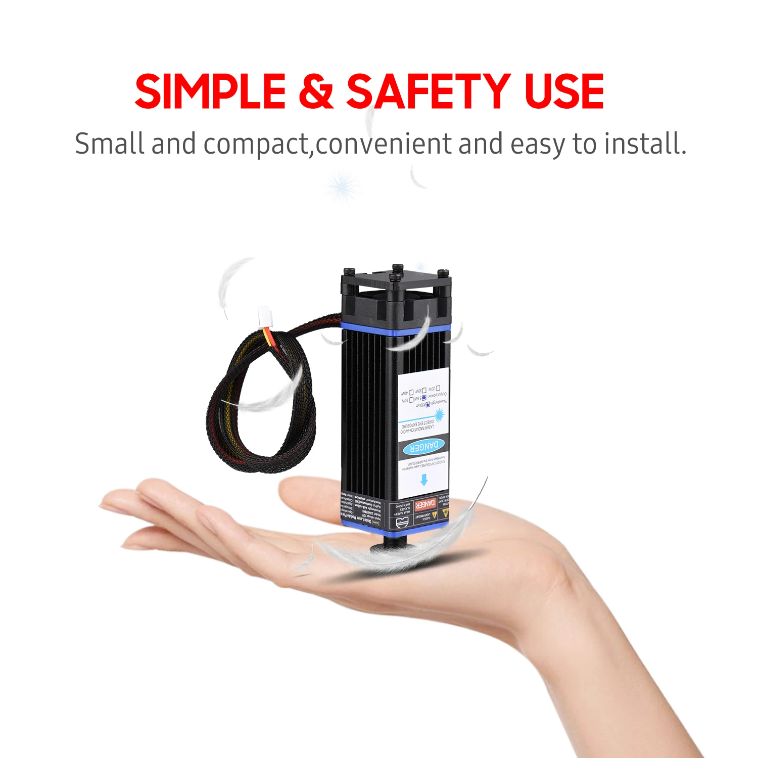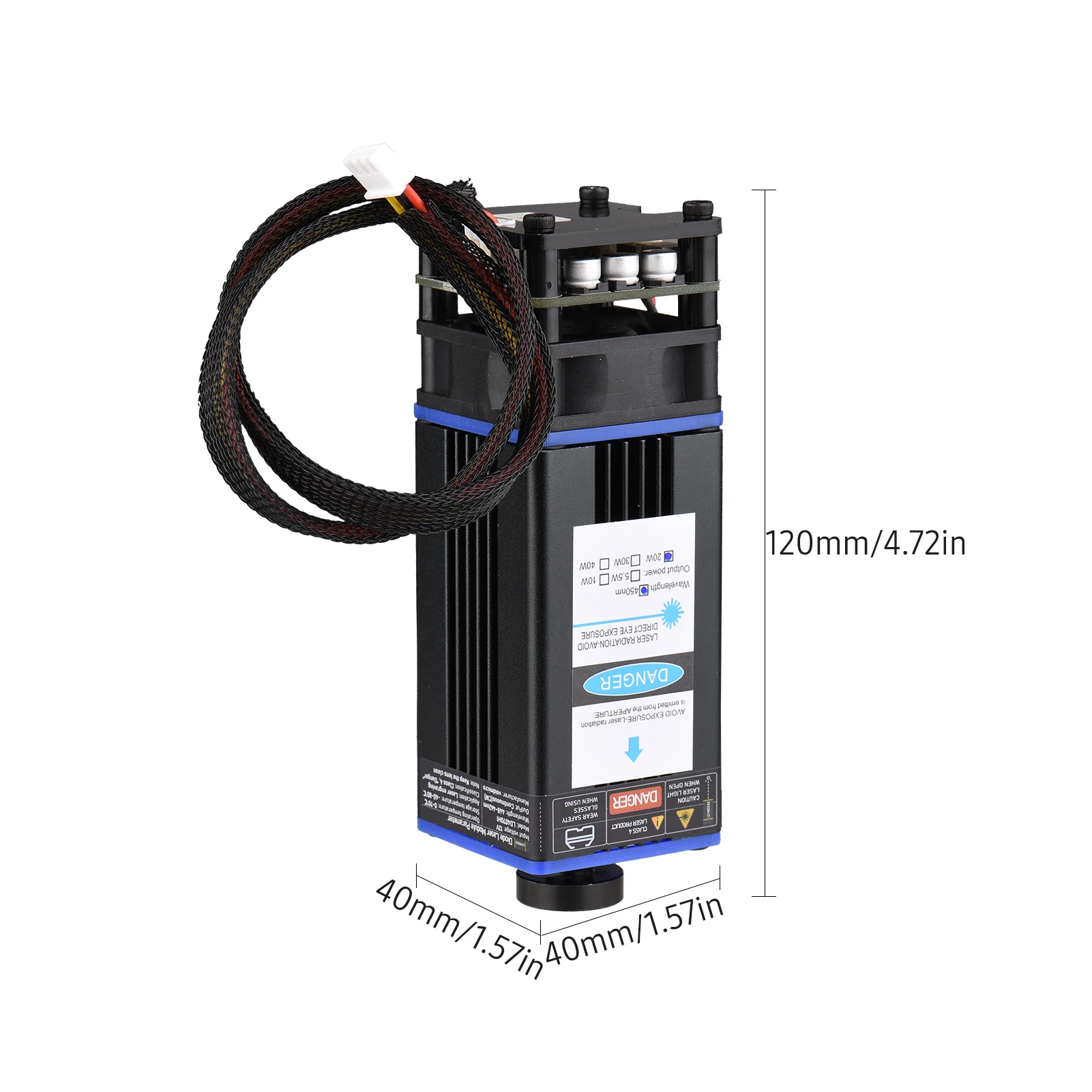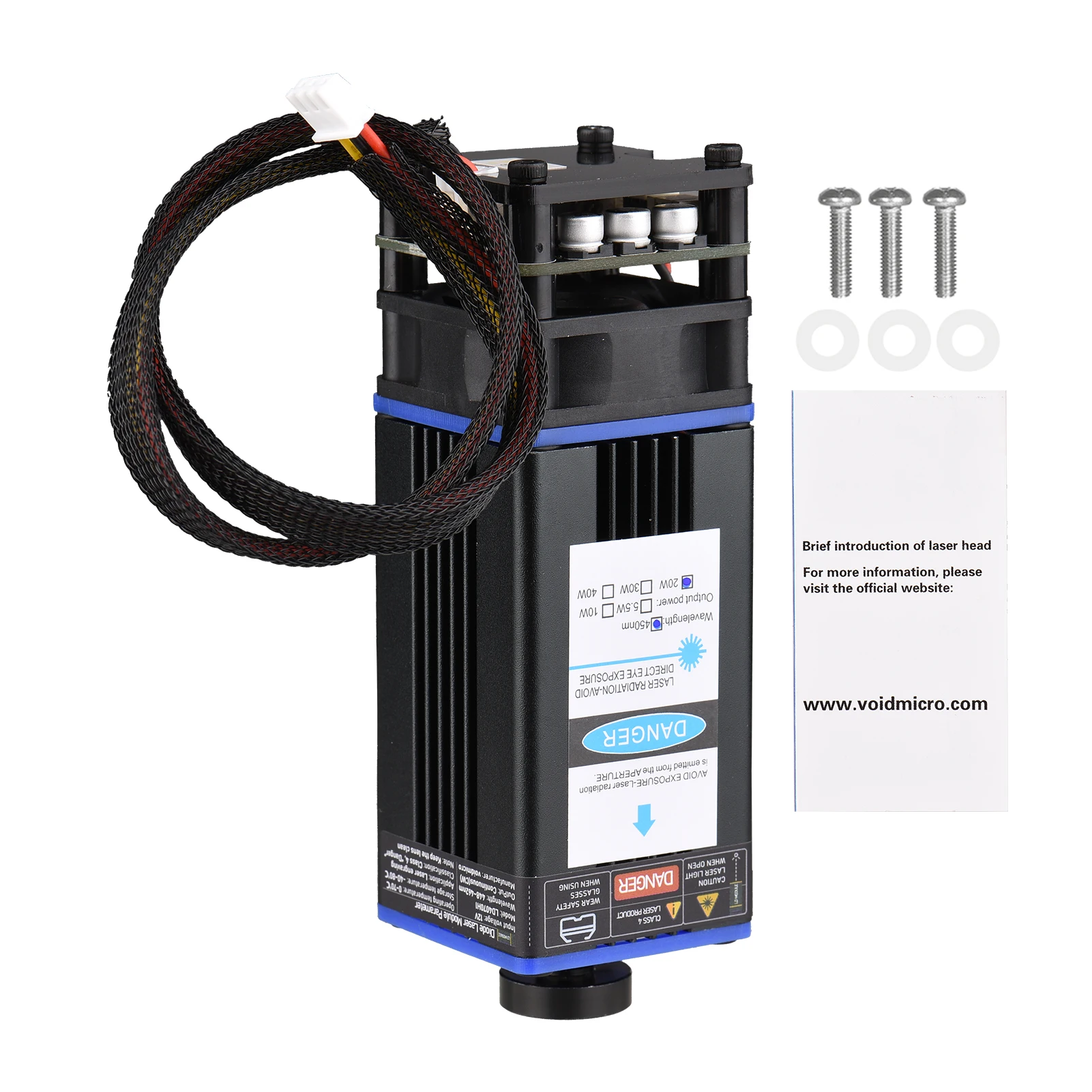 Профессиональный лазерный модуль, простой в установке, с более низкой потерей, обеспечивает длину волны 450нм, для эффективной, точной гравировки и резки пластика, дерева, кожи, бумаги и так далее, подходит для широкого спектра гравировальных машин.