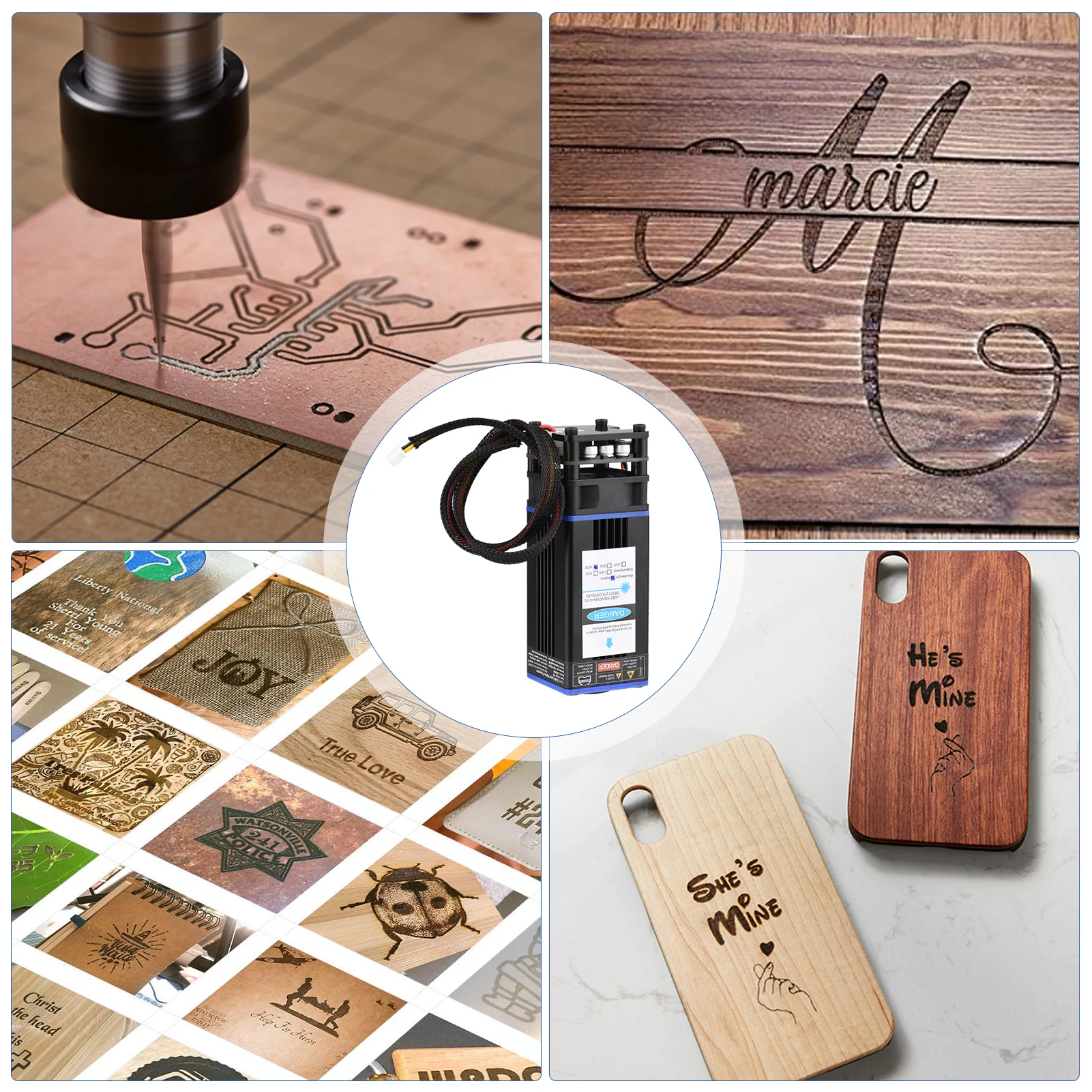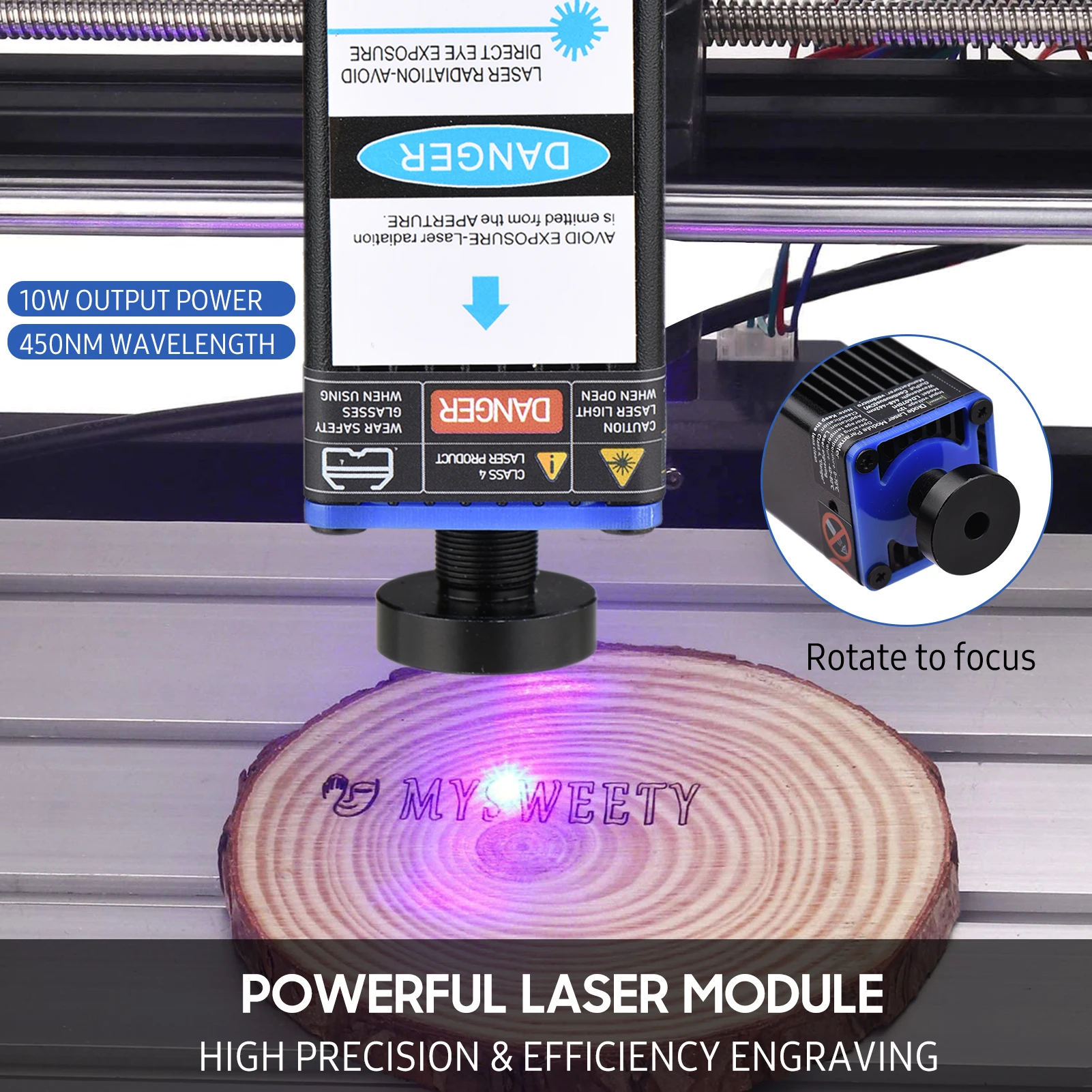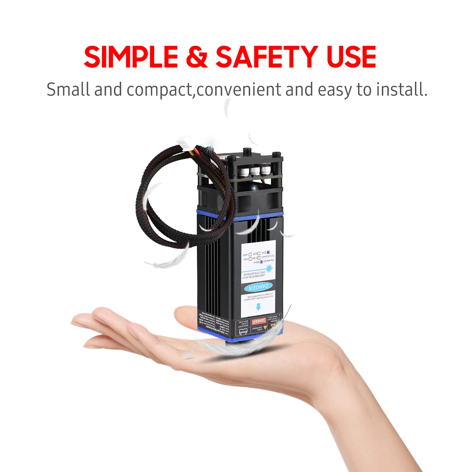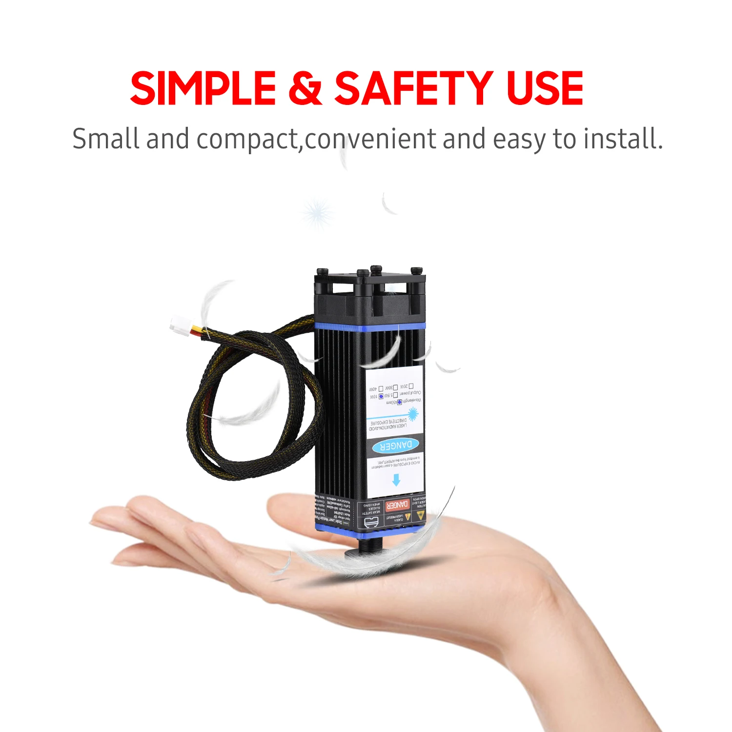 Профессиональный лазерный модуль, простой в установке, с более низкой потерей, обеспечивает длину волны 450нм, для эффективной, точной гравировки и резки пластика, дерева, кожи, бумаги и так далее, подходит для широкого спектра гравировальных машин.
