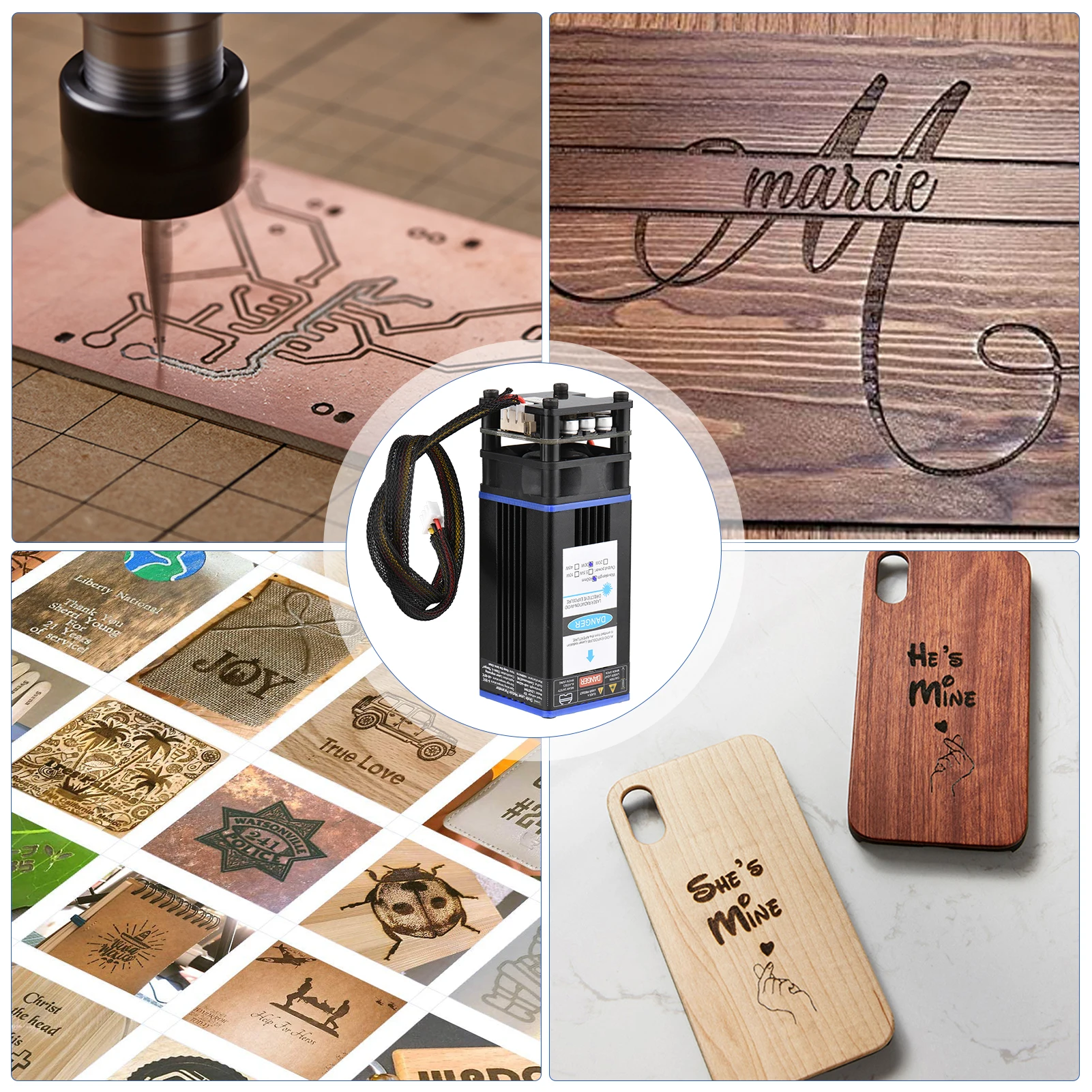 Он может гравировать бумагу, дерево, ткань, пластик, кожу, анодированный алюминий и т. д. различные лазерные модули для гравировки/резки различных видов материала и разной толщины.