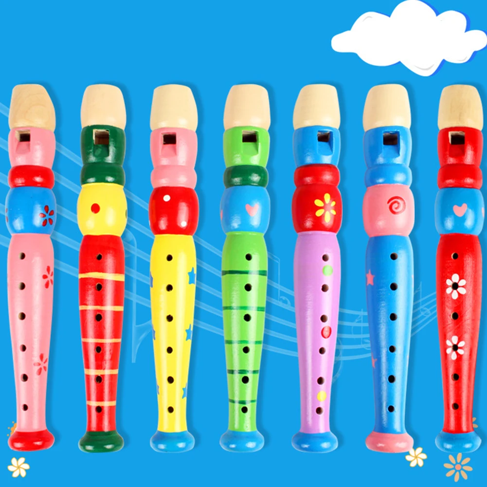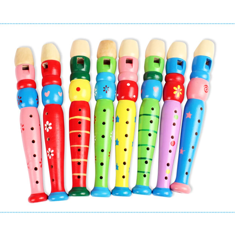 Красивые и красочные узоры, напечатанные на деревянной флейте, легкие и портативные, эта деревянная флейта-отличная музыкальная обучающая игрушка для детей.