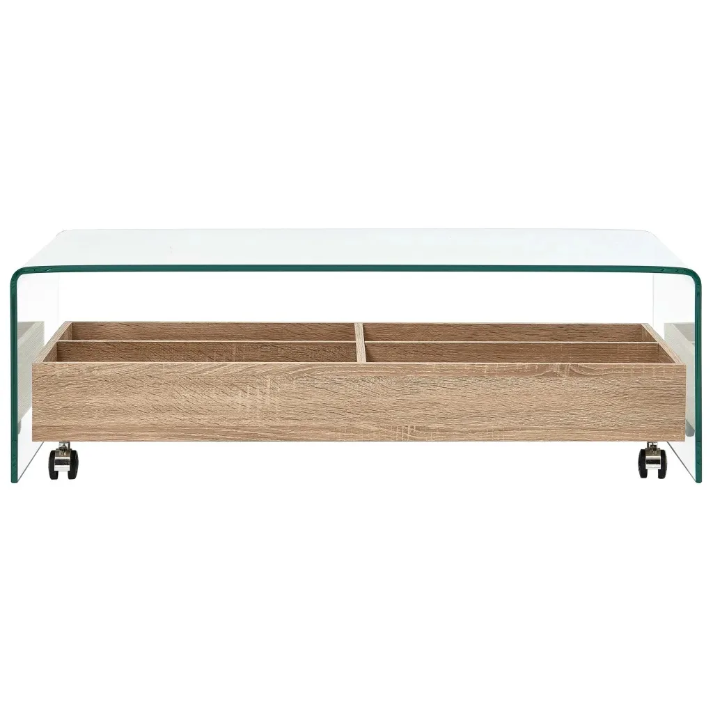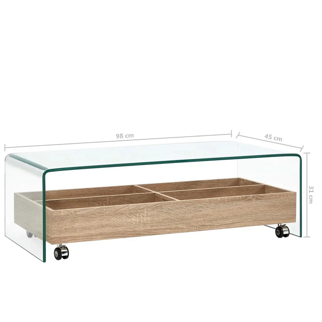 Журнальный столик изготовлен из закаленного безопасного стекла, который безопаснее и прочнее обычного стекла.Этот практичный журнальный столик поможет сохранить дом аккуратным благодаря отделениям для хранения мдф, которые идеально подойдут для книг, журналов и других мелких предметов, которые вы хотите сохранить в пределах досягаемости.Благодаря прочной конструкции, стол очень прочный.Кроме того, вы также можете легко перемещать MDF блок под поверхность и держать его на месте благодаря 4 жидким поворотным роликам.