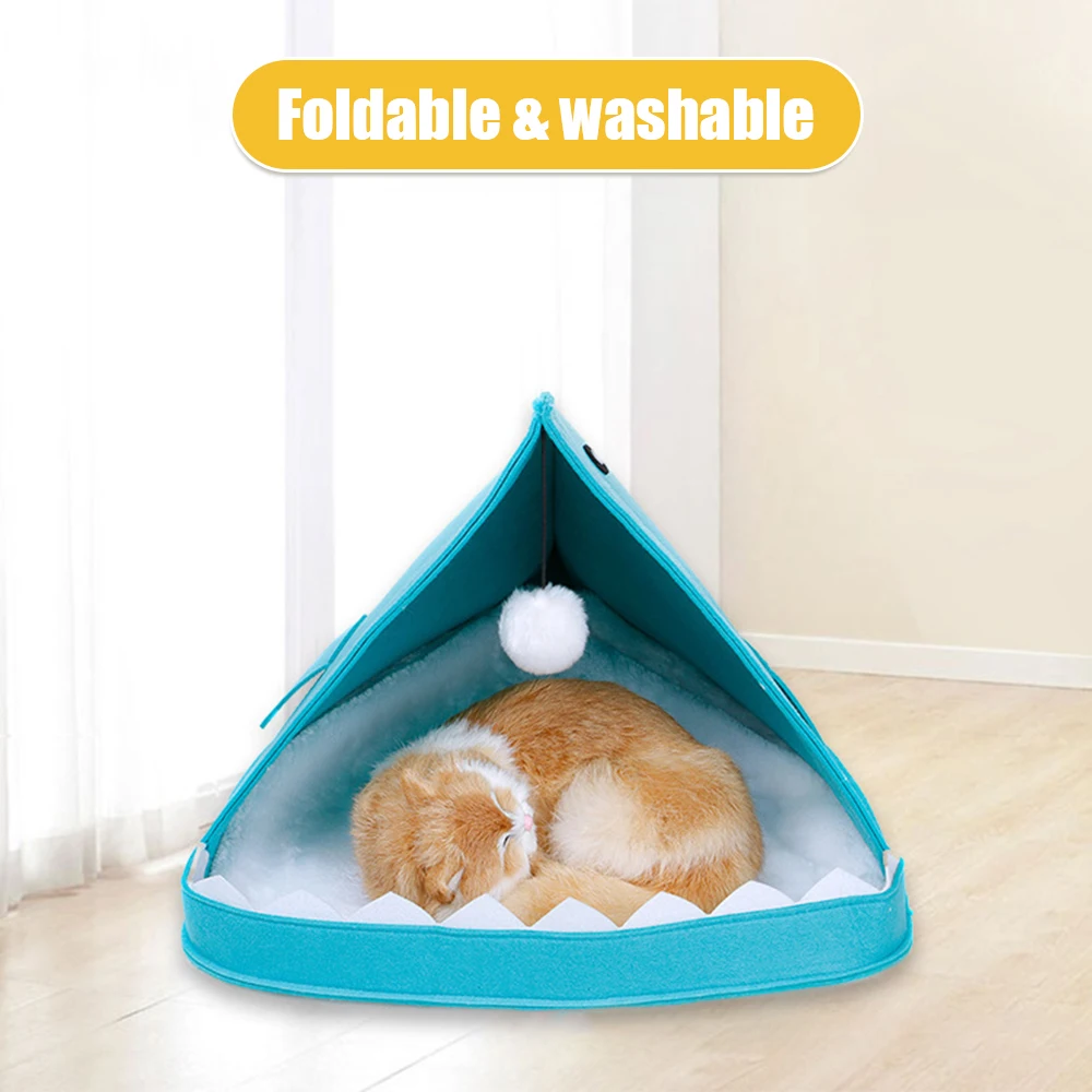 Складная кровать для домашних животных из фетра, симпатичная моющаяся кровать для кошек с острым животным принтом
