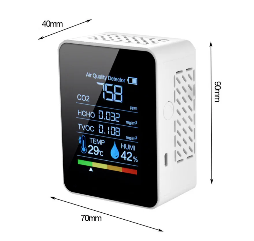 * Три в одном дизайне: мониторинг в реальном времени и отображение в реальном времени концентрации углекислого газа, формальдегида и TVOC