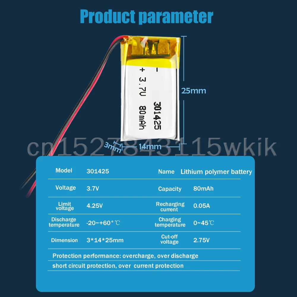 301425 3,7 V 80mAh перезаряжаемый литий-полимерный аккумулятор для MP3 MP4 GPS игрушки гарнитура и динамики с Bluetooth светодиодный смарт-часы Lipo Cell