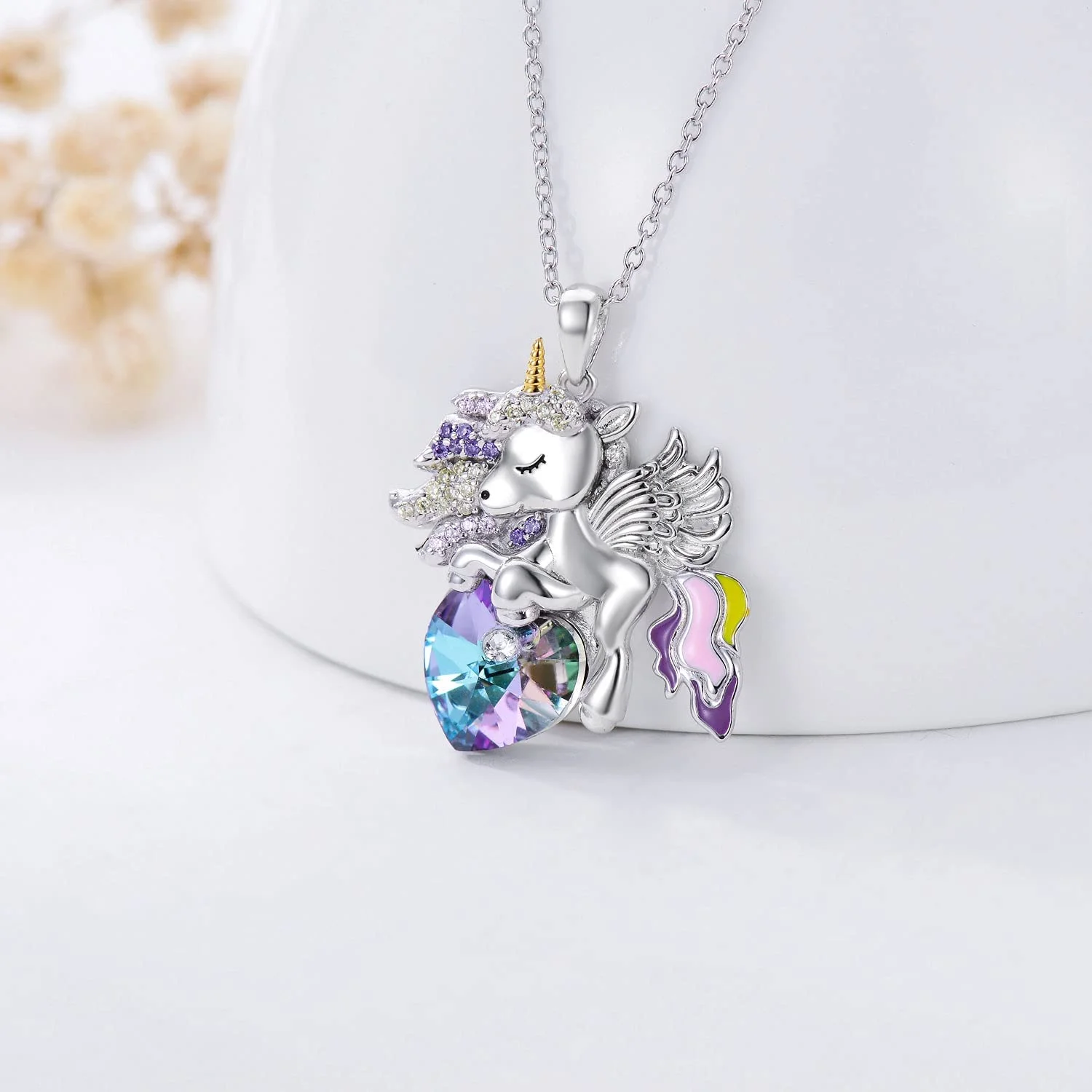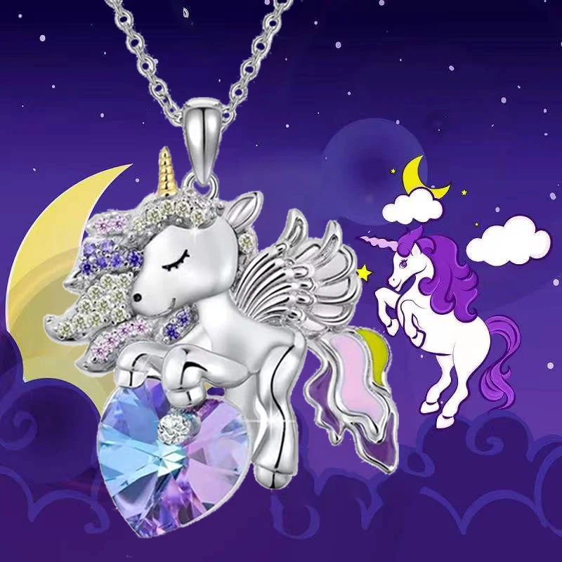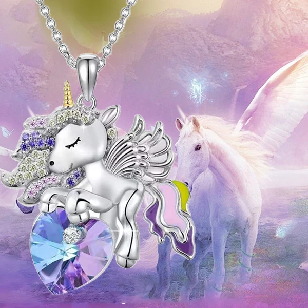 [Уникальный дизайн] Радужный Единорог шагает по кристаллу в форме сердца и парит в небо. Предназначен для тех, кто любит единорогов, это лучший подарок для любителей единорога.