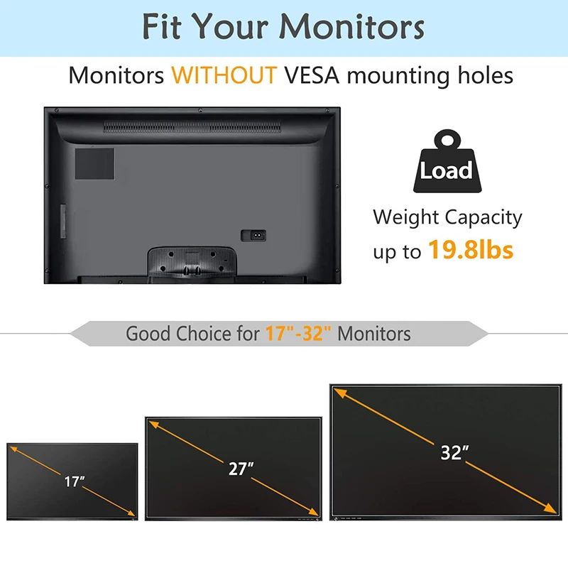 Регулируемый адаптер VESA-разработан с регулируемыми полосками, которые могут быть расширены для размещения различных размеров и форм мониторов. Этот комплект крепления адаптера без VESA можно легко отрегулировать для разных мониторов.