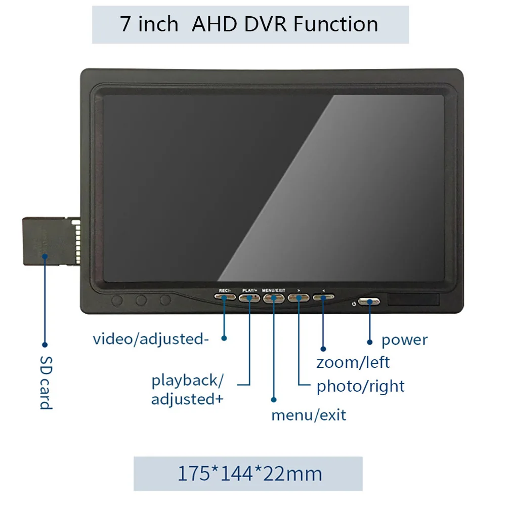 1. Монитор: 7 дюймов IPS цветной монитор записи с солнцезащитным козырьком для яркой окружающей среды снаружи