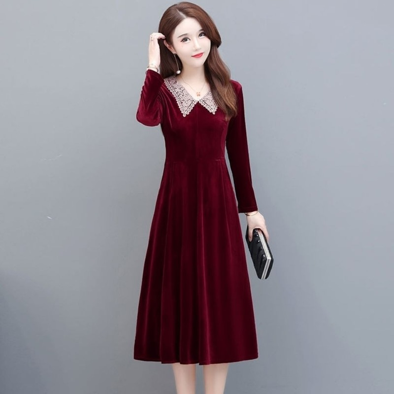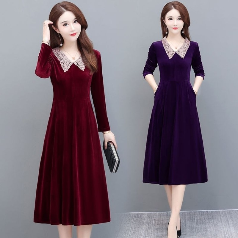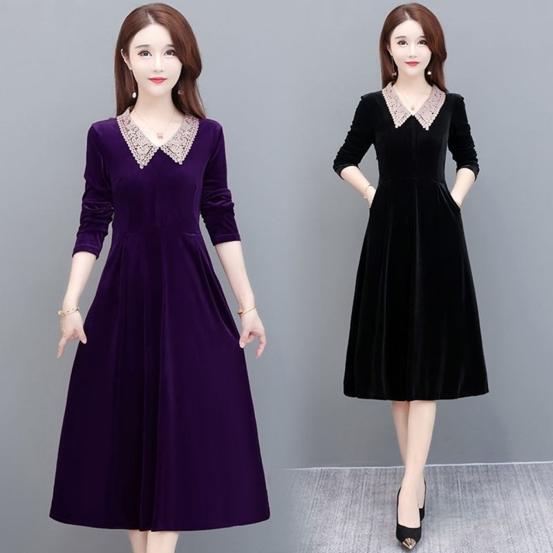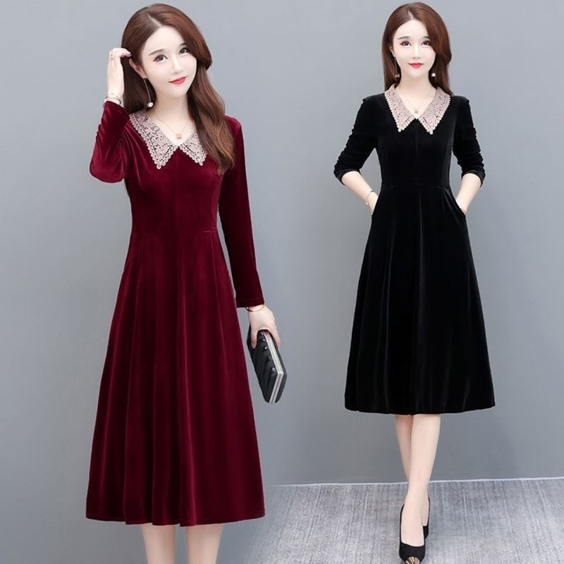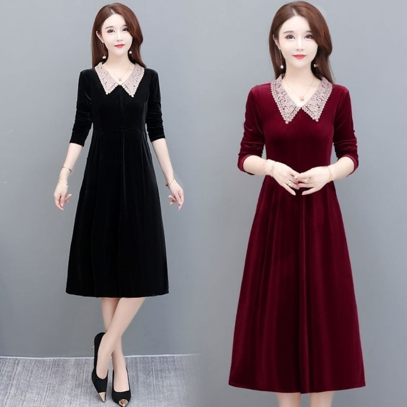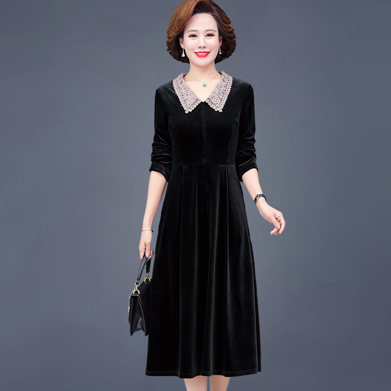Женское бархатное платье размера плюс 5XL, новинка 2022, повседневное свободное платье макси для мамы, черное, красное, зимняя одежда с длинными рукавами, вечерние платья J67