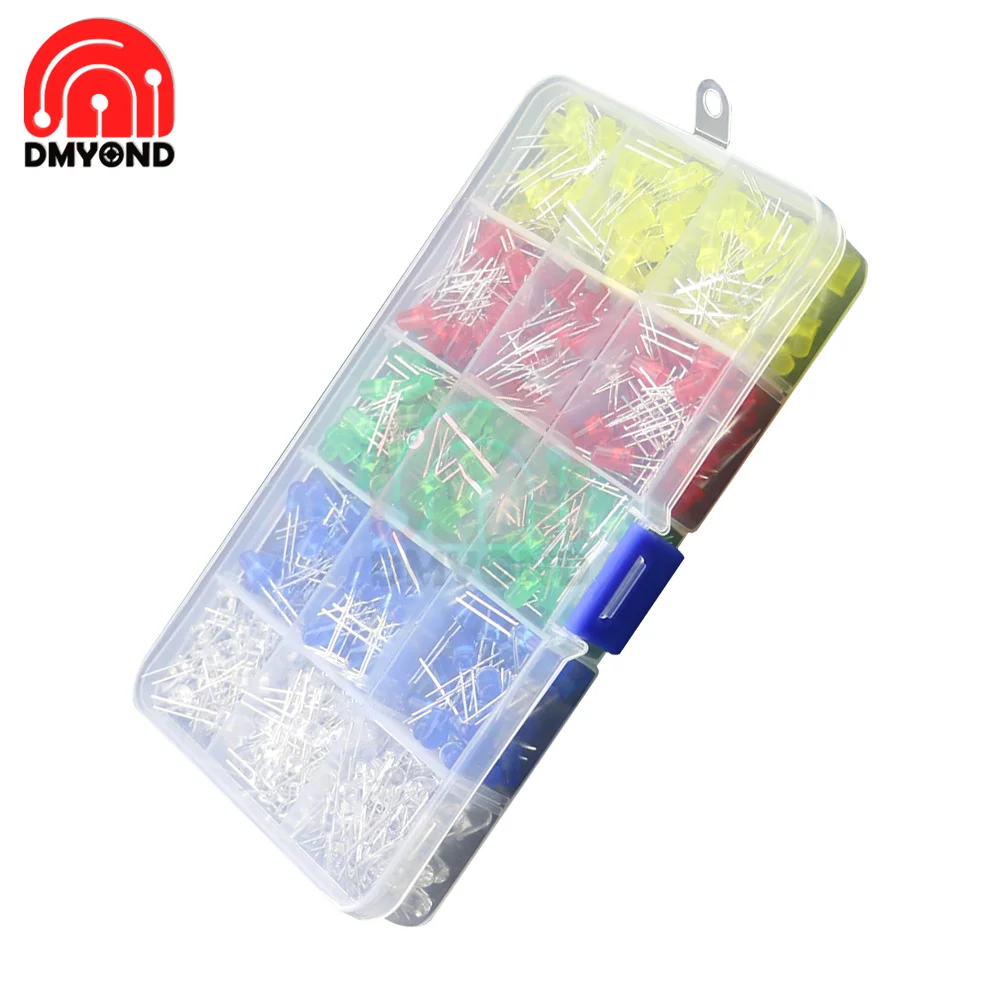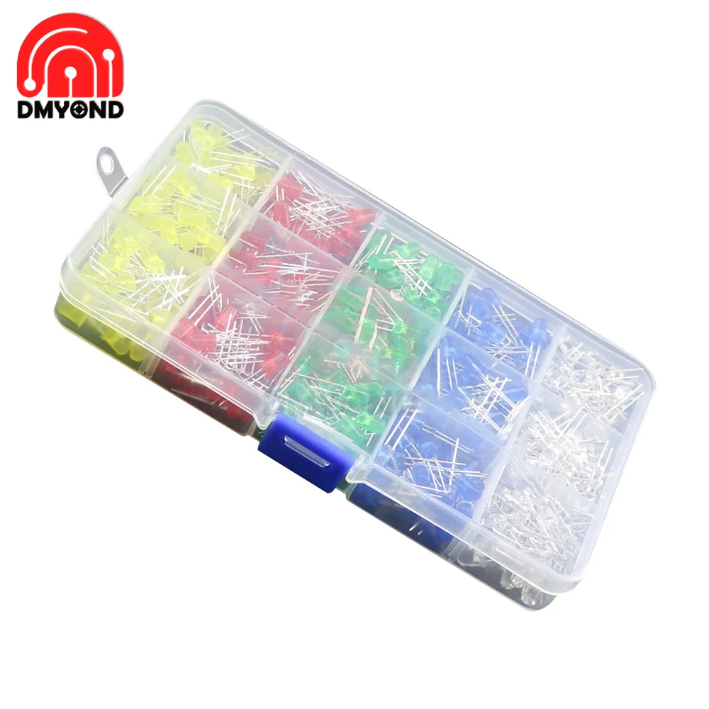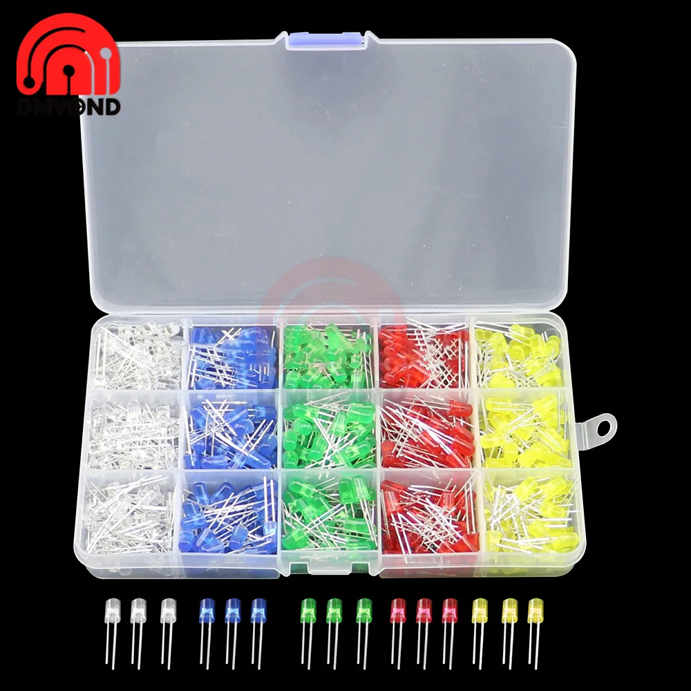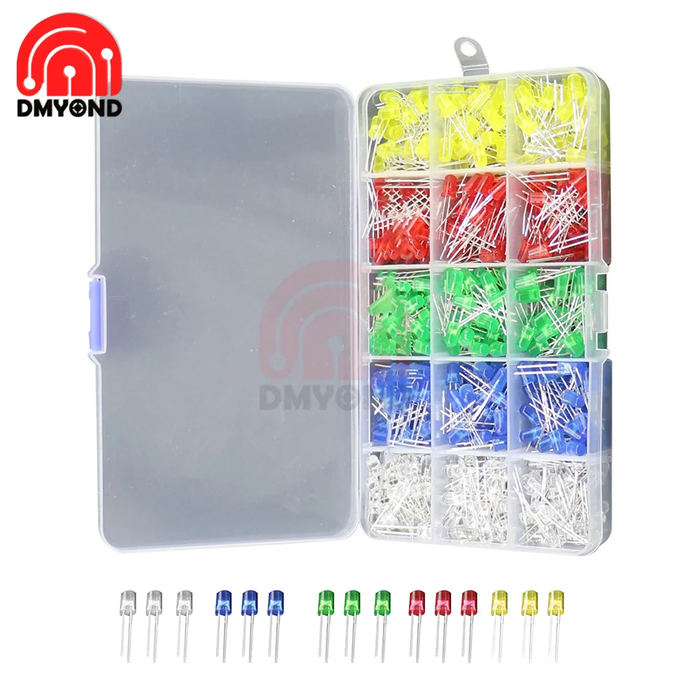 500 шт./кор. 5 мм светодиодный Диод комплект красный, желтый, синий, зеленый, белый, и белый пятицветные светильник шт/набор диодов