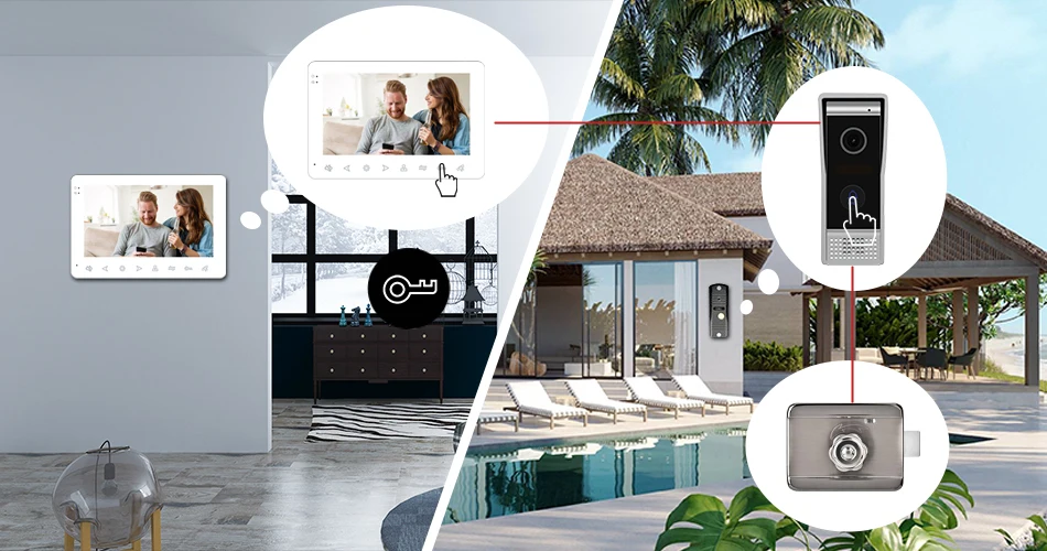 The product can be connected to two electronic locks at most, and both can be unlocked using the one-key unlocking function on the monitor, which will provide you with more convenience.