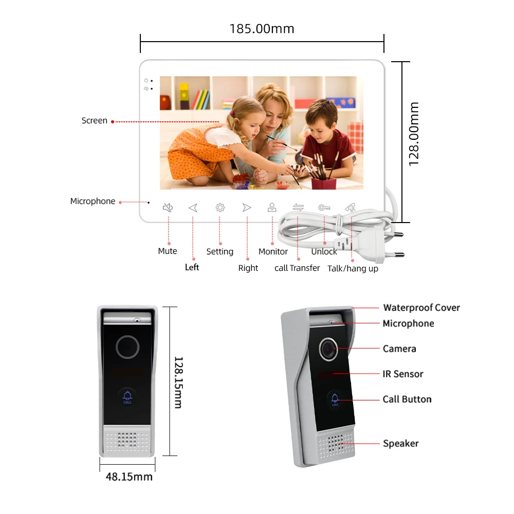 With Joytimer 7”Wired Video Door Phone System, Visitor Can Use Call Panel Calls, Then You Use Video call with guests Indoor Monitor Unlocking, Monitoring, Taking Pictures And Recording Video.