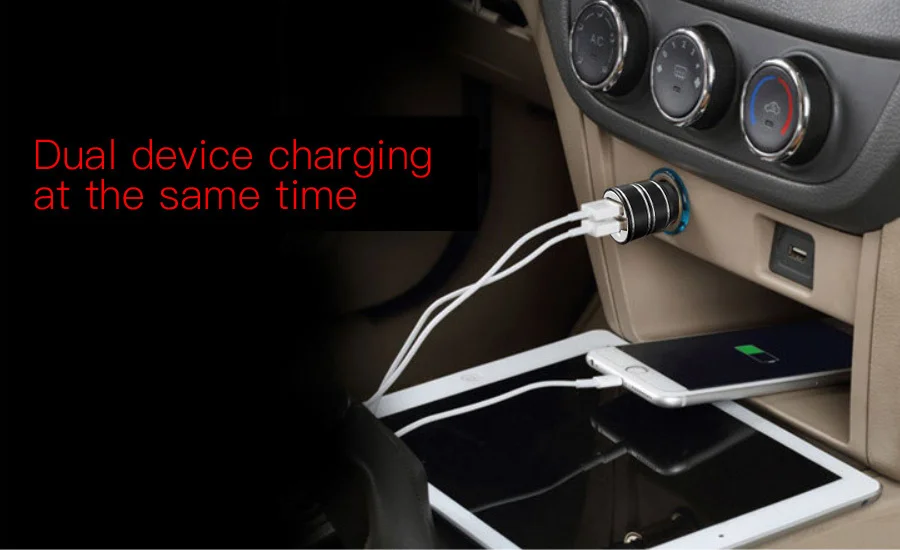 - двухконтурный (2.1A / 1A) автозарядник USB для вашего iPad, iPhone, iPod, HTC, ежевики, MP3 плеера, цифровых камер, PDA, мобильных телефонов