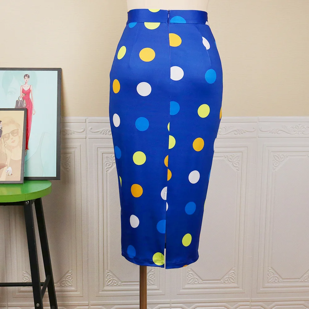 2022 Модная элегантная Сексуальная Женская юбка-карандаш VD2772 синего цвета с узором в разноцветный горошек с принтом женские вечерние юбка миди