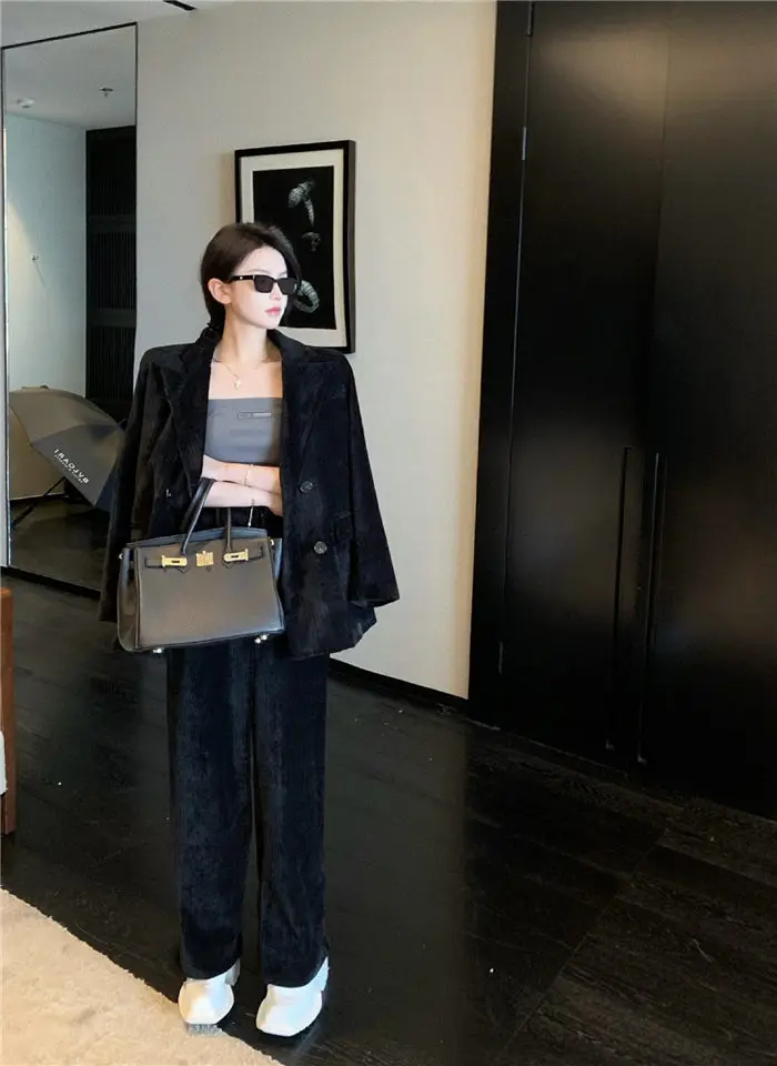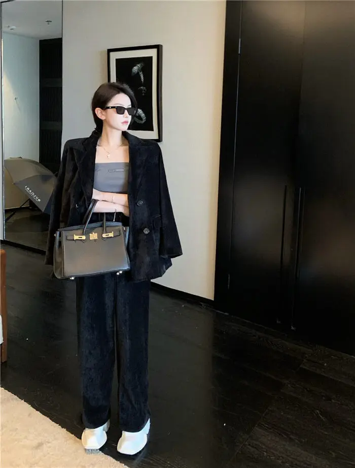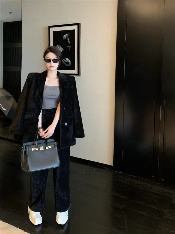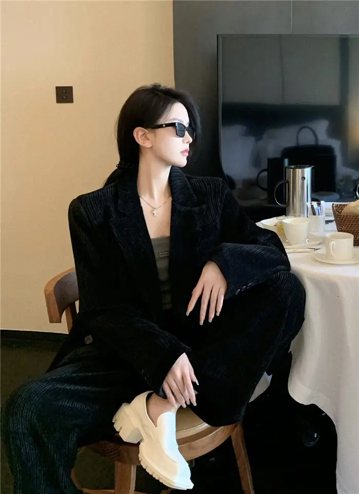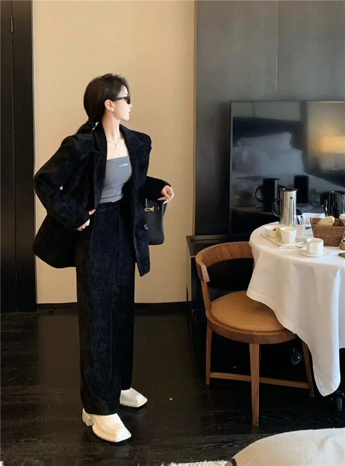 Блейзер одного размера подходит всем, брюки делятся на S, M, L.