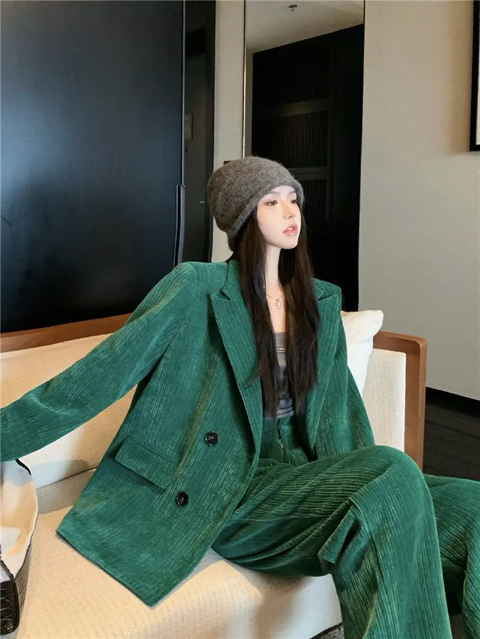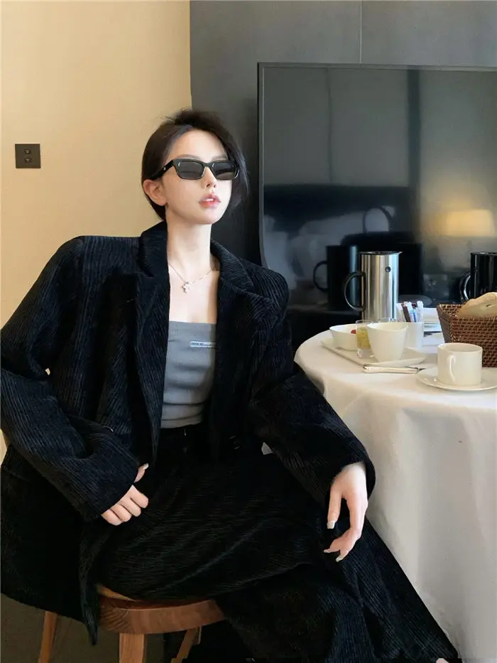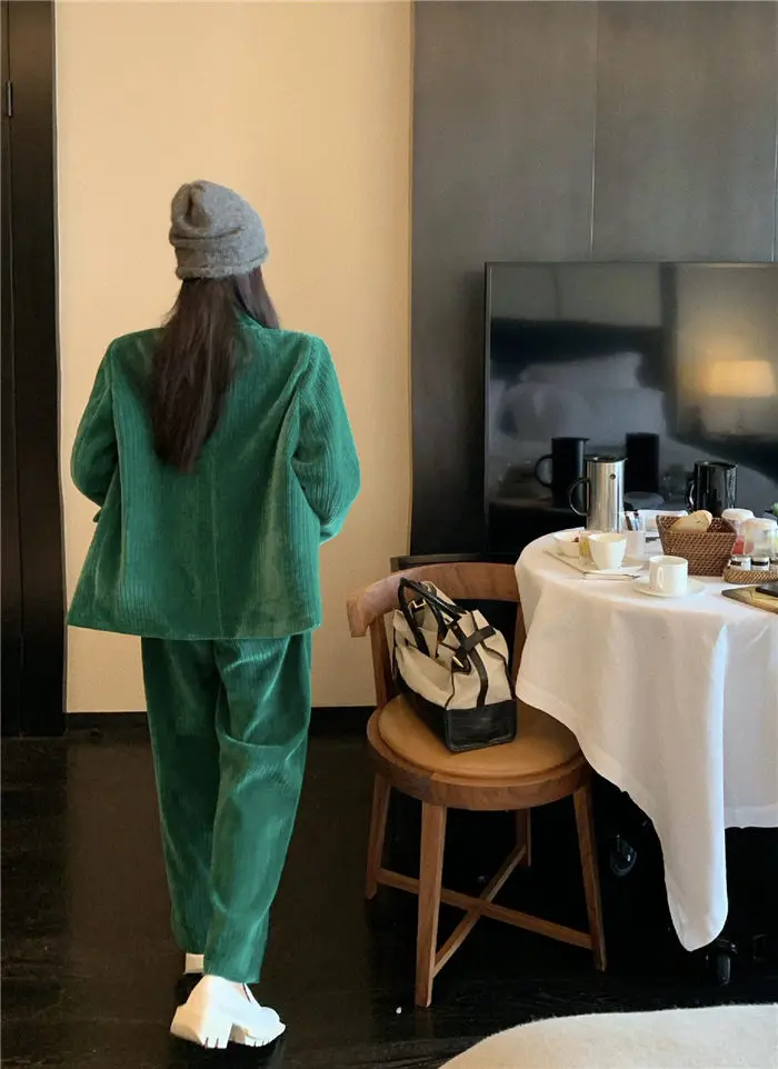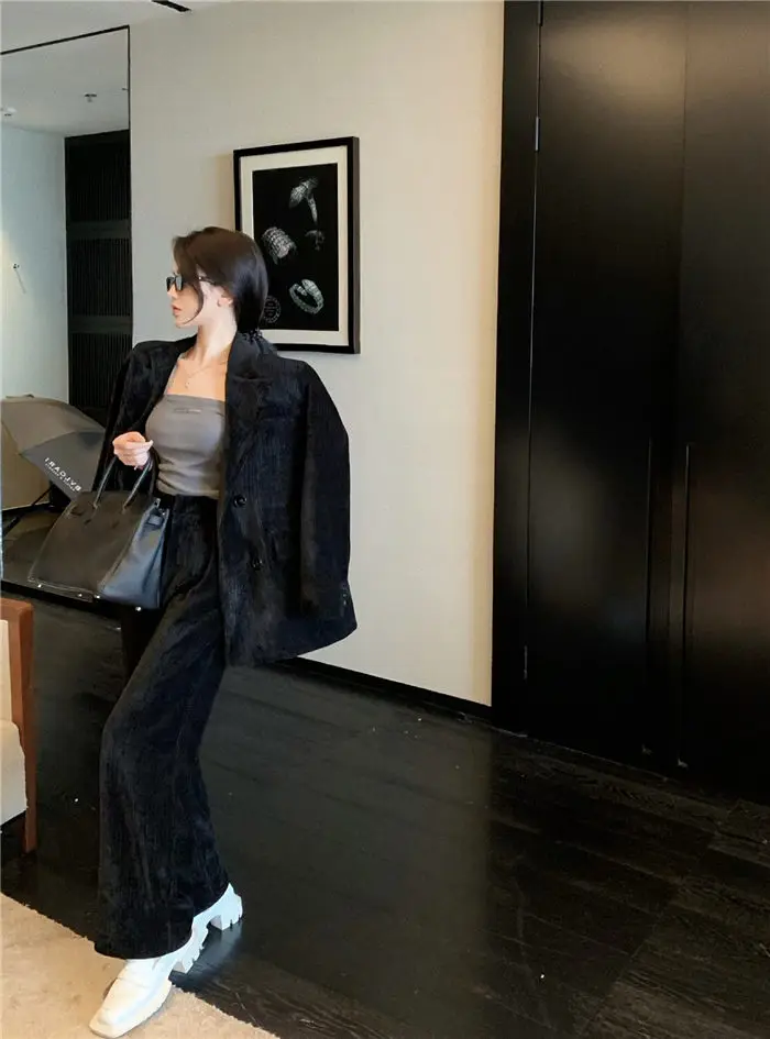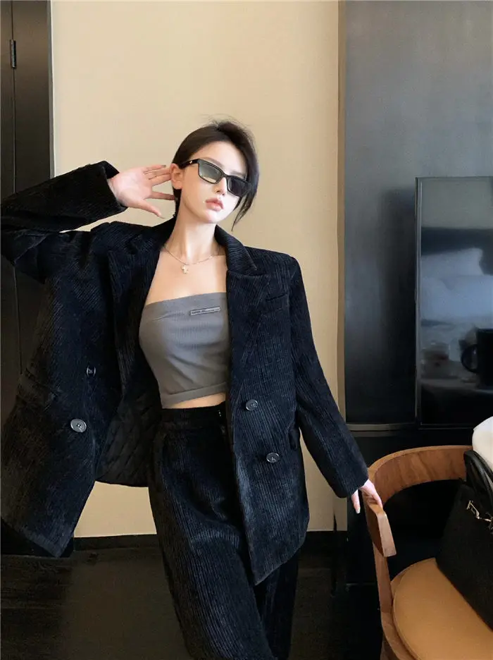 Блейзер одного размера подходит всем, брюки делятся на S, M, L.