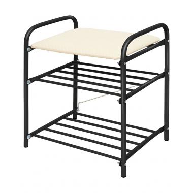 Напольная подставка для обуви. Преимущества:. •2 надежные полки для размещения обуви. •усиленный металлический каркас. •материал сиденья прочный, устойчивый к истиранию и легкий в чистке. •покрытие каркаса банкетки устойчиво к механическим воздействиям.
