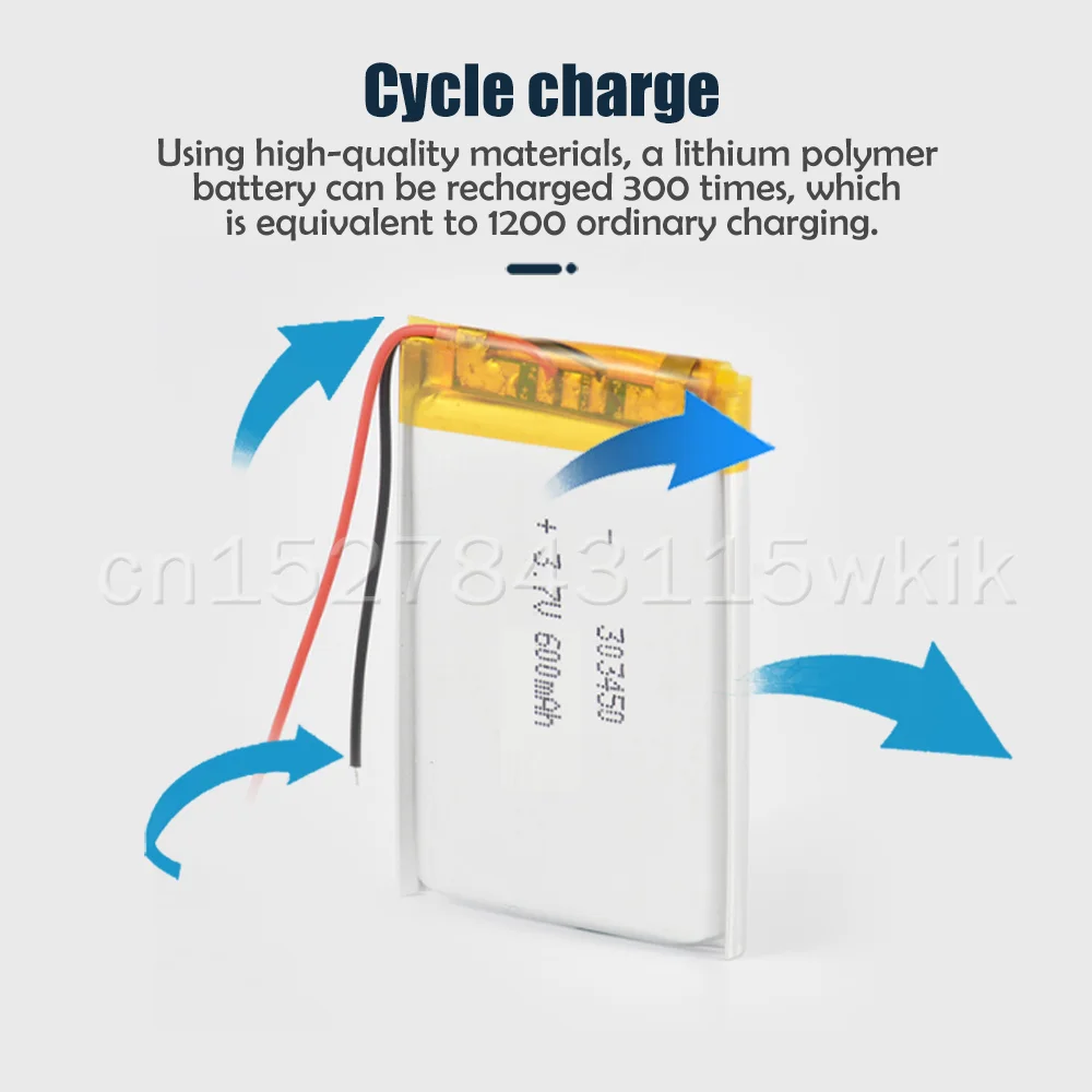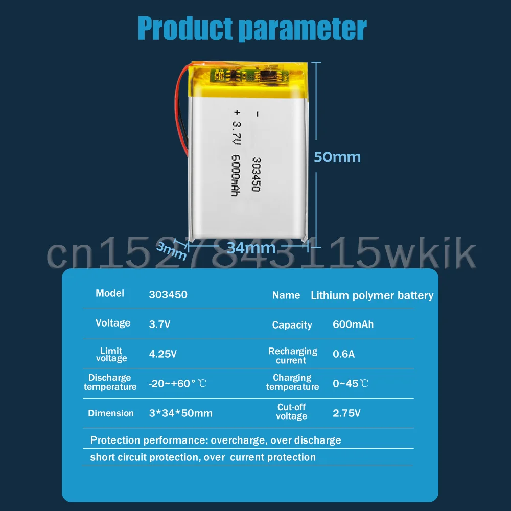 3,7 V 600mAh 303450 перезаряжаемый литий-полимерный литий-ионный аккумулятор для Светодиодный светильник MP3 MP4 MP5 GPS PSP DIY игрушка Bluetooth гарнитура