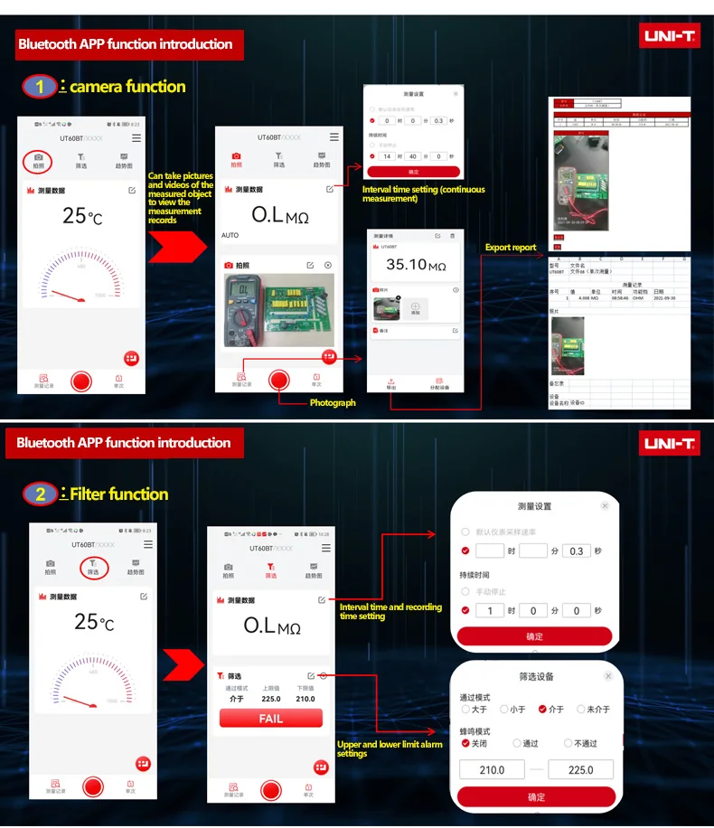 Цифровые мультиметры серии UT60 обеспечивают истинное измерение RMS, разрешение 9999, Бесконтактное Обнаружение напряжения и множество удобных функций для тестирования потребностей пользователей. Эти автомобильные измерительные приборы могут измерять напряжение до 1000 В переменного/постоянного тока, ток 10 А переменного/постоянного тока и сопротивление 100MΩ. Простой в использовании интерфейс с Подсветкой позволяет быстро использовать оборудование обнаружения даже в темных местах.