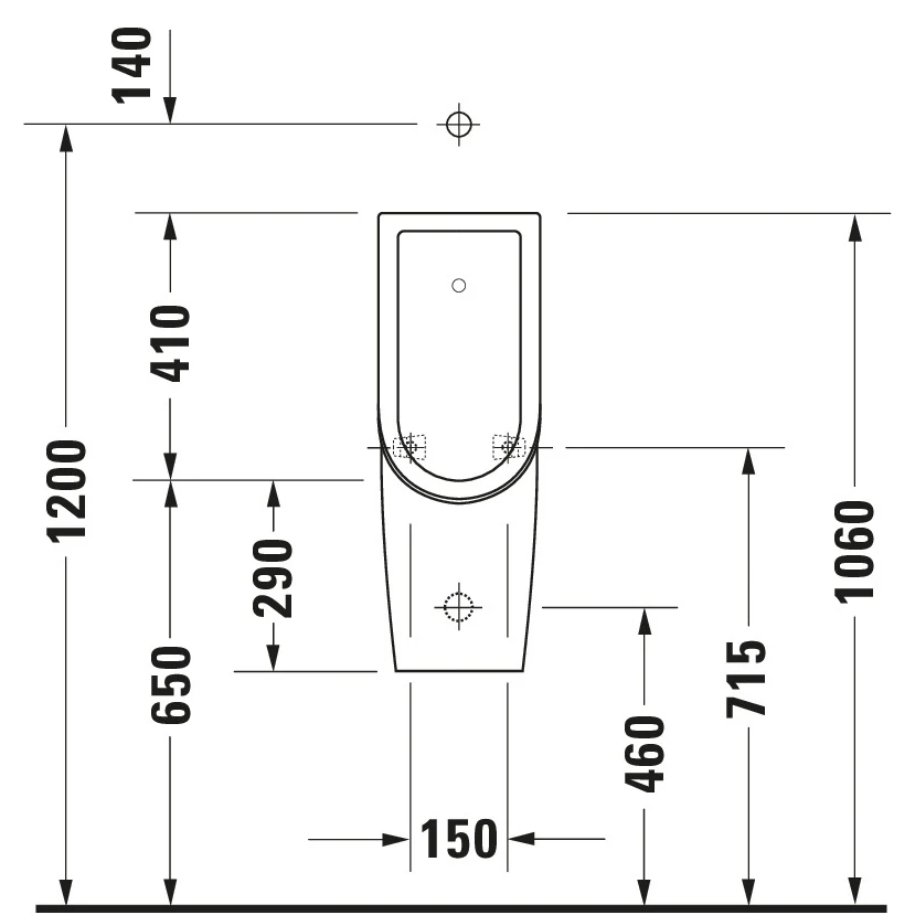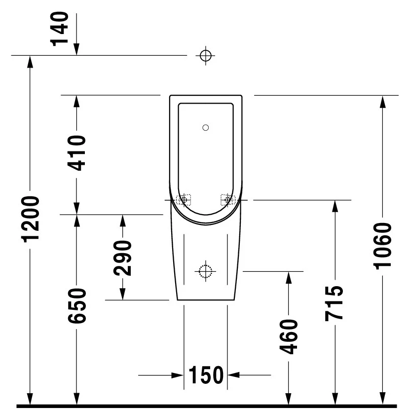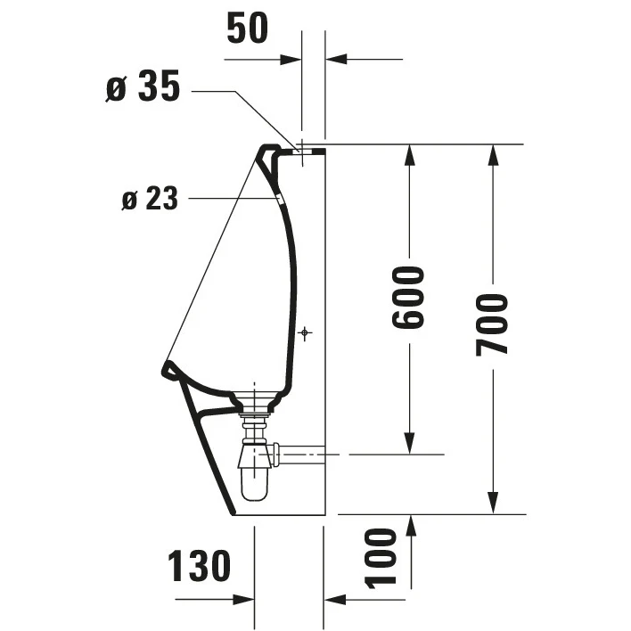 Писсуар подвесной, без "мушки", под внешний налив, подача воды сверху, без смывного края.