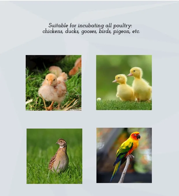 8. Подходит для инкубации всей птицы: кур, уток, гусиных животных, птиц, голубей и т. д.