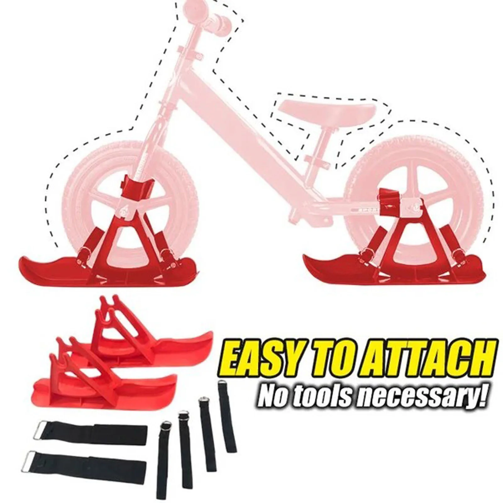 Поворот Велосипед вашего ребенка в сани для катания. Детский велотренажер для сноуборда Идеальное дополнение к зимней игрушке. Не нужно сдуваться. Просто прикрепите И зафиксируйте его на 12-14 “велосипедных шинах. Пусть ваши дети катаются на лыжах Задний двор или склоны для снежного дня.