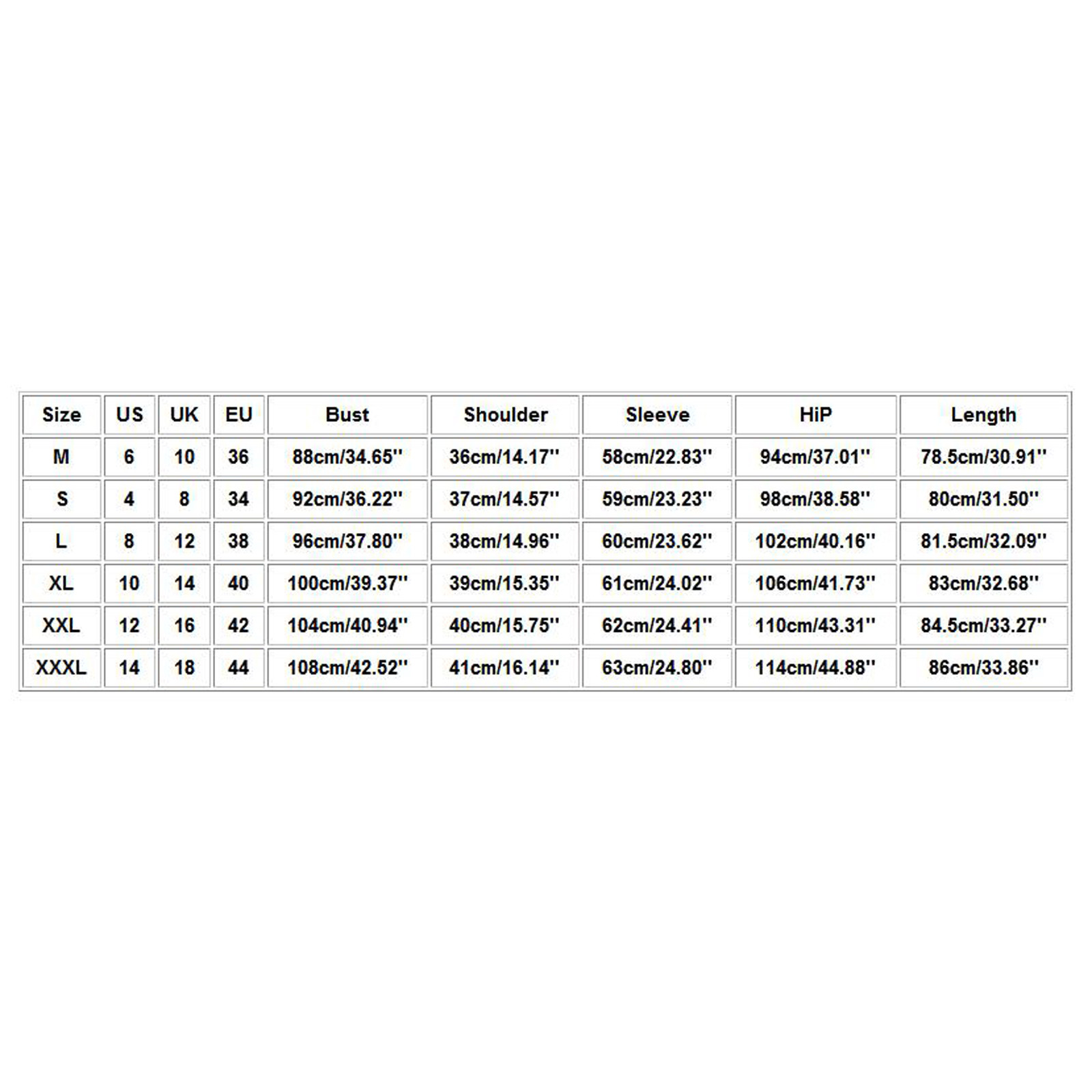 Размеры США Великобритания ЕС Бюст Плечо Рукав Бедра Длина М 6 10 36 88 см/34,65'' 36 см/14,17'' 58 см/22,83'' 94 см/37,01'' 78,5 см/30,91'' S 4 8 34 92 см/36,22'' 37 см/14,57'' 59 см/23,23'' 98 см/38,58'' 80 см/31,50'' L 8 12 38 96 см/37,80'' 38 см/14,96'' 60 см/23,62'' 102 см/40,16'' 81,5 см/32,09'' XL 10 14 40 100 см/39,37'' 39 см/15,35'' 61 см/24,02'' 106 см/41,73'' 83 см/32,68'' XXL 12 16 42 104 см/40,94'' 40 см/15,75'' 62 см/24,41'' 110 см/43,31'' 84,5 см/33,27'' XХХL 14 18 44 108 см/42,52'' 41 см/16,14'' 63 см/24,80'' 114 см/44,88'' 86 см/33,86''Замечательный набор скатерть и чехлы на стулья заказывала здесь некоторое время назад. И вот хочу сказать что в быту они... Читать отзыв полностью...