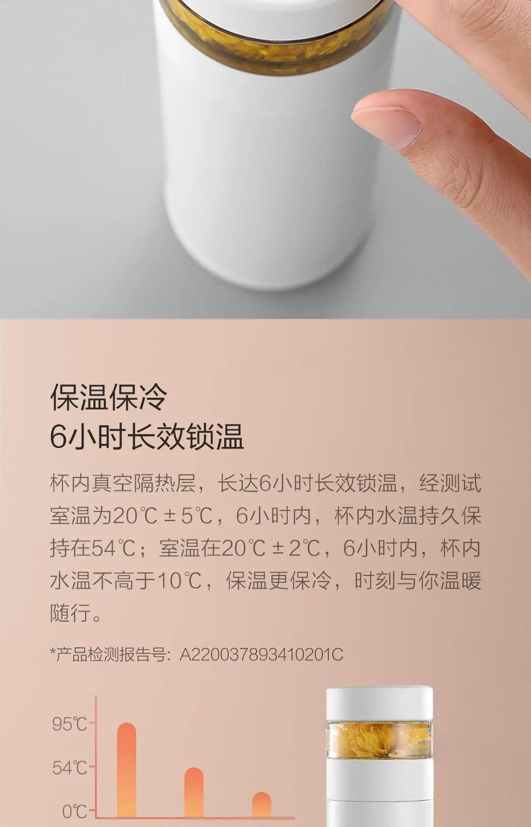 Xiaomi QUANGE Смарт чай изоляционная кружка H8133 одно касание, чтобы показать температуру 316 нержавеющая сталь чай разделение держать холодной и горячей