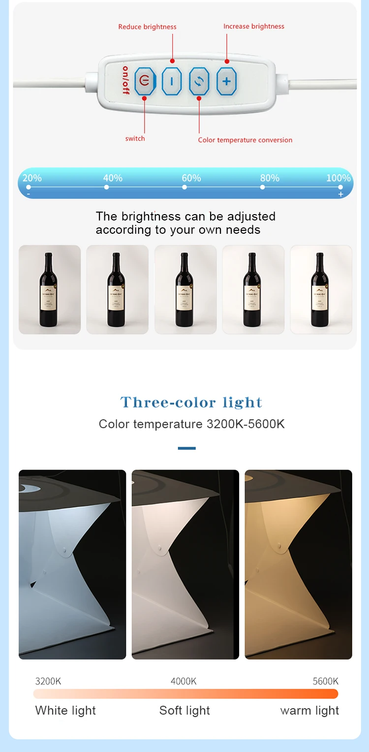 1. Светильник для фотосъемки предназначен для небольших предметов для любителей фотографии, ремесленников, художников, продавцов etsy и других онлайн-продавцов, профессионалов и клиентов по рекламе продукта.