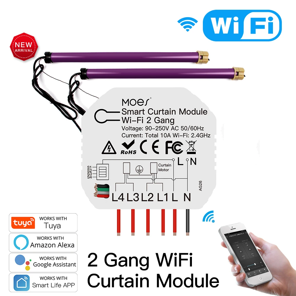 1. Легко Превратите свой дом в умный с новым мощным функциональным умным переключателем штор; Разумно Управляйте двумя рольставнями или шторками затвора гораздо проще с помощью независимых режимов управления; может работать с умным карнизом для ролика Затвор/жалюзи для реализации автоматизации для всех штор s дома; Добавить моторизованные оттенки или другие аналогичные устройства для вашего умного дома с умным карнизом! (Примечание: занавес двигателя не входит в посылка, вам нужно самостоятельно купить его с 4 проводами.)