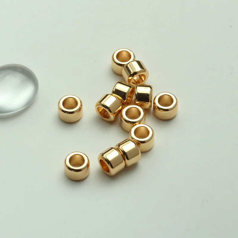 14K позолоченные большие отверстия ведро бусины Сделай Сам ручной работы аксессуары 5*7 мм кожаный канат фиксированный изоляционный бисер Ретро бусины