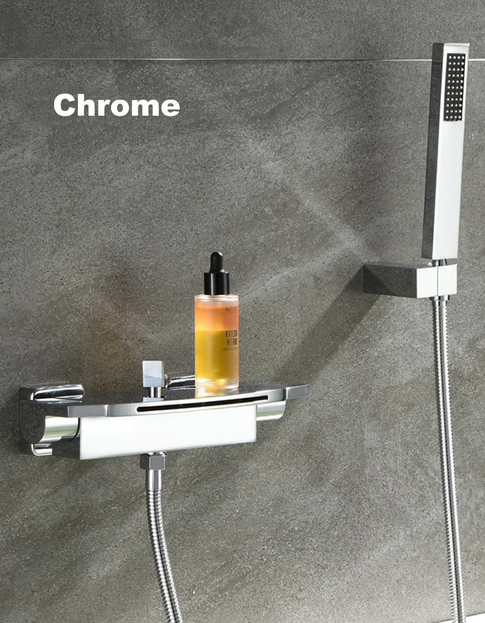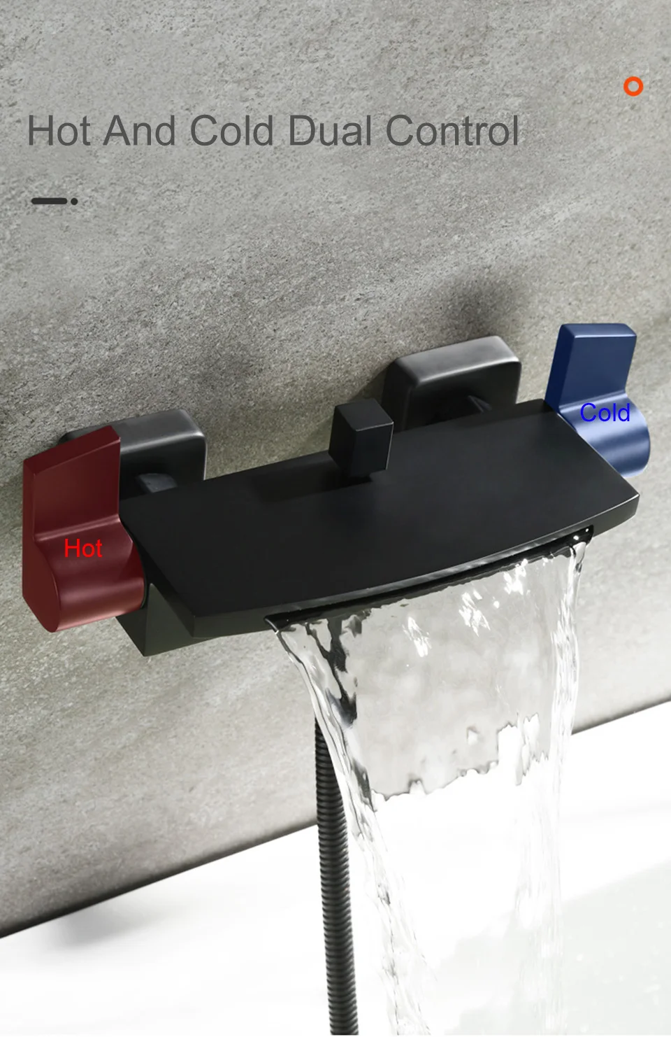 Черный смеситель для душа с водопадом, с двойной ручкой, настенный, для ванной, набор для душа, двойной Contral Смеситель, ручной душ, хромированный, золотой