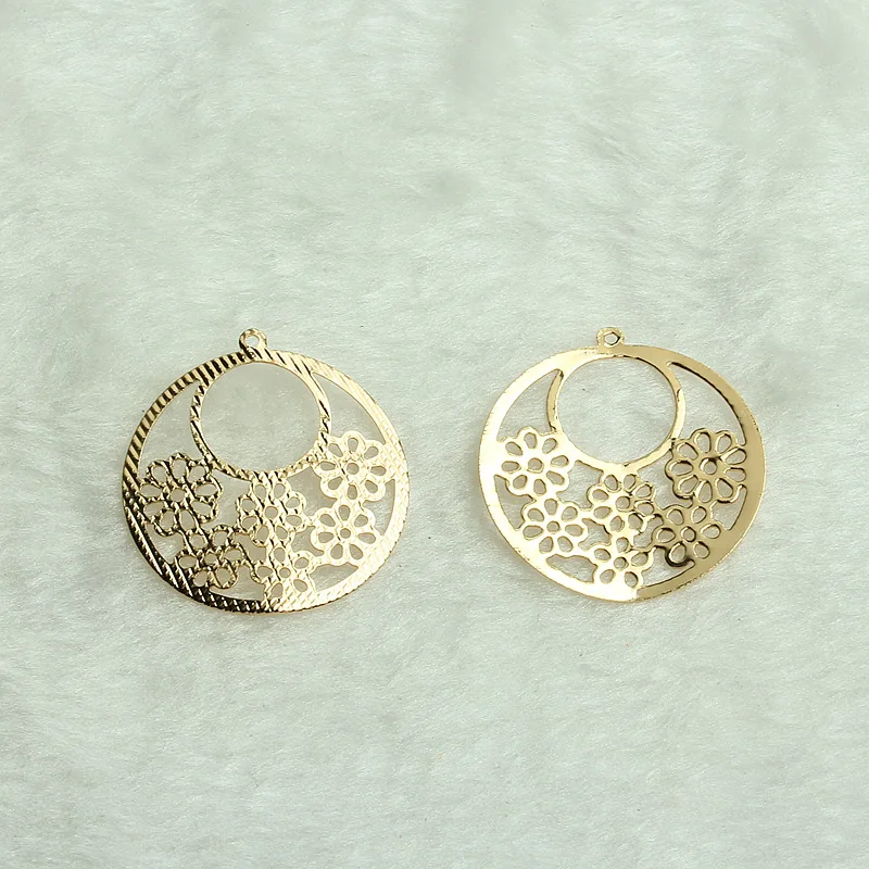14K Золотые круглые дуги полые серьги с цветами аксессуары DIY аксессуары ручной работы ретро большие серьги крючок висячий кусок