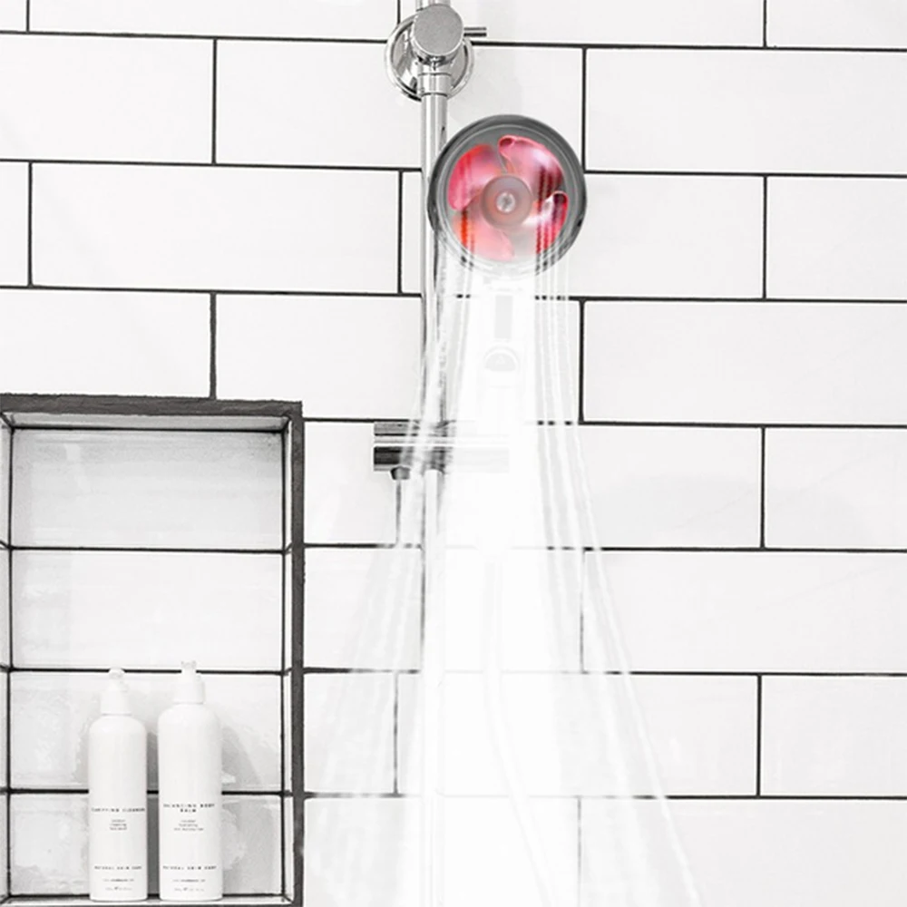 ♢[Массажный эффект]: ручная душевая головка с пропеллером распределяет воду в виде чистой струи воды, которая мягко касается вашего тела во время принятия душа. Расслабляет мышцы, способствует циркуляции крови и улучшает внешний вид кожи.