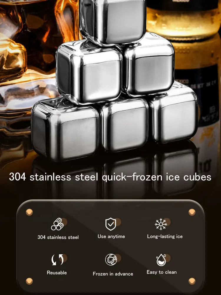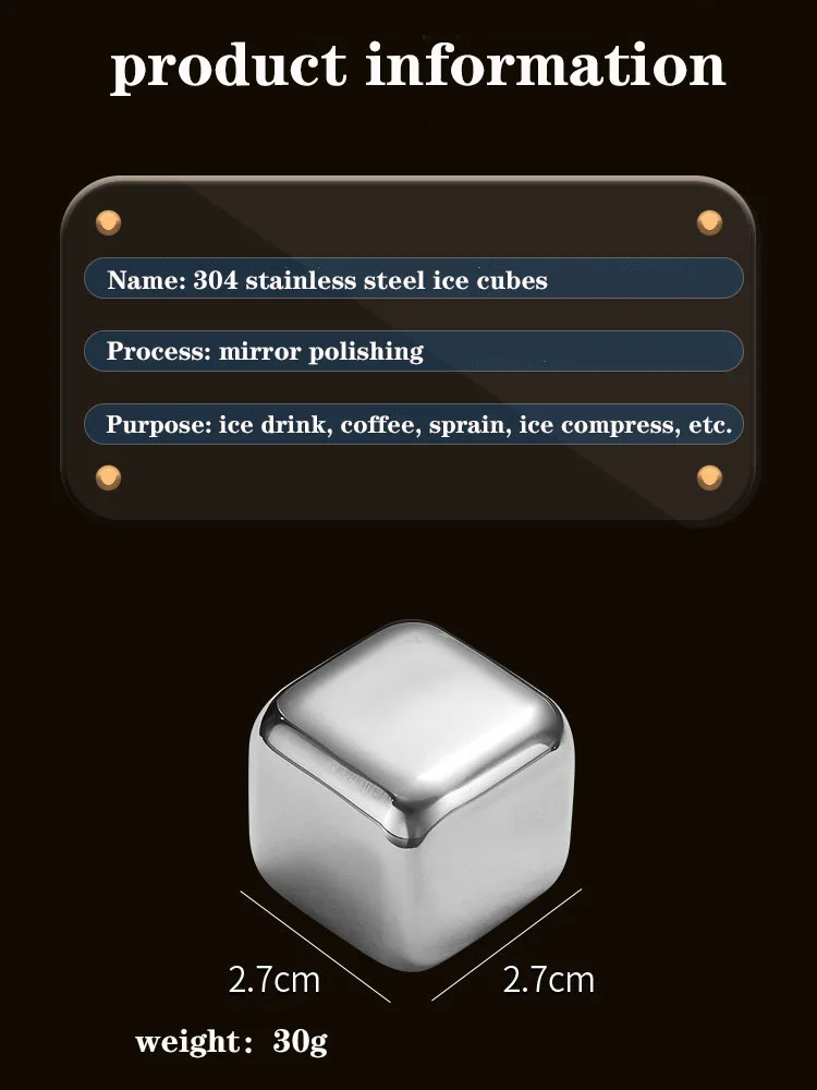 Набор кубиков льда из нержавеющей стали, многоразовые охлаждающие камни для виски, винных напитков, охлаждающий кубик, охлаждающий рок, вечерние инструменты для бара, кухни 7D