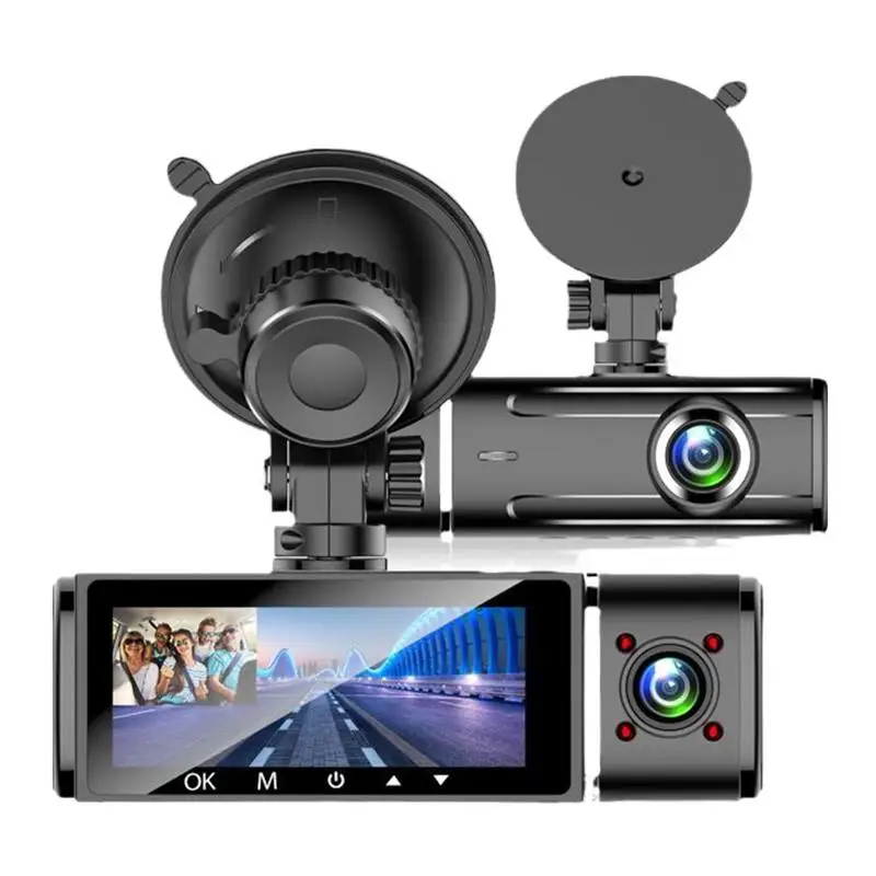 TSV 1080P Dual Lens Car DVR Dash Cam with a 3.16-inch LCD screen, the 6-glass HD dual lens dash cam simultaneously records both front and inside at 1920x1080P 30fps, which provides sharp high-quality videos/images and powerful evidence in case of an accident. Dual lens car DVR dash camera perfect for Uber/Taxi/Rideshare drivers or people who need to record both scenery and happy time with their families. 1080P dual lens car DVR dashcam has excellent night/day vision and HDR technology. The interior facing car camera with 4 infrared LED lights and an F/1.8 aperture can handle low light conditions and ensure flawless video footage even when the passenger cabin is dark at night. the front camera equipped with HDR technology provides great exposure and dynamic range in low light conditions. Dual lens car DVR dash cam is compact design and wide-angle lens. The well-built elliptical cylinder compact body makes this small dashcam ideal for discreet recording when you don't want individuals outside to notice your dash cam setup. And the 170° wide-angle front lens and 140° cabin lens capture the whole road in front of you from the edges of your windscreen and simultaneously record what is happening inside the cabin. With the function of loop recording and G-sensor, 1080P dual lens car DVR dashcam continuous loop recording will automatically overwrite the oldest footage, so you don't need to worry about your memory card running out of space. Combined with G-sensor (built-in acceleration collision sensor), the dash cam front and inside will lock the footage to prevent the video from being overwritten when it detects a sudden shake/collision, which can be used as evidence and insurance claims during car accidents. And combined with the parking monitor, the dual-lens car dash cam will automatically power on and start recording when it detects external force, providing you with security every moment.